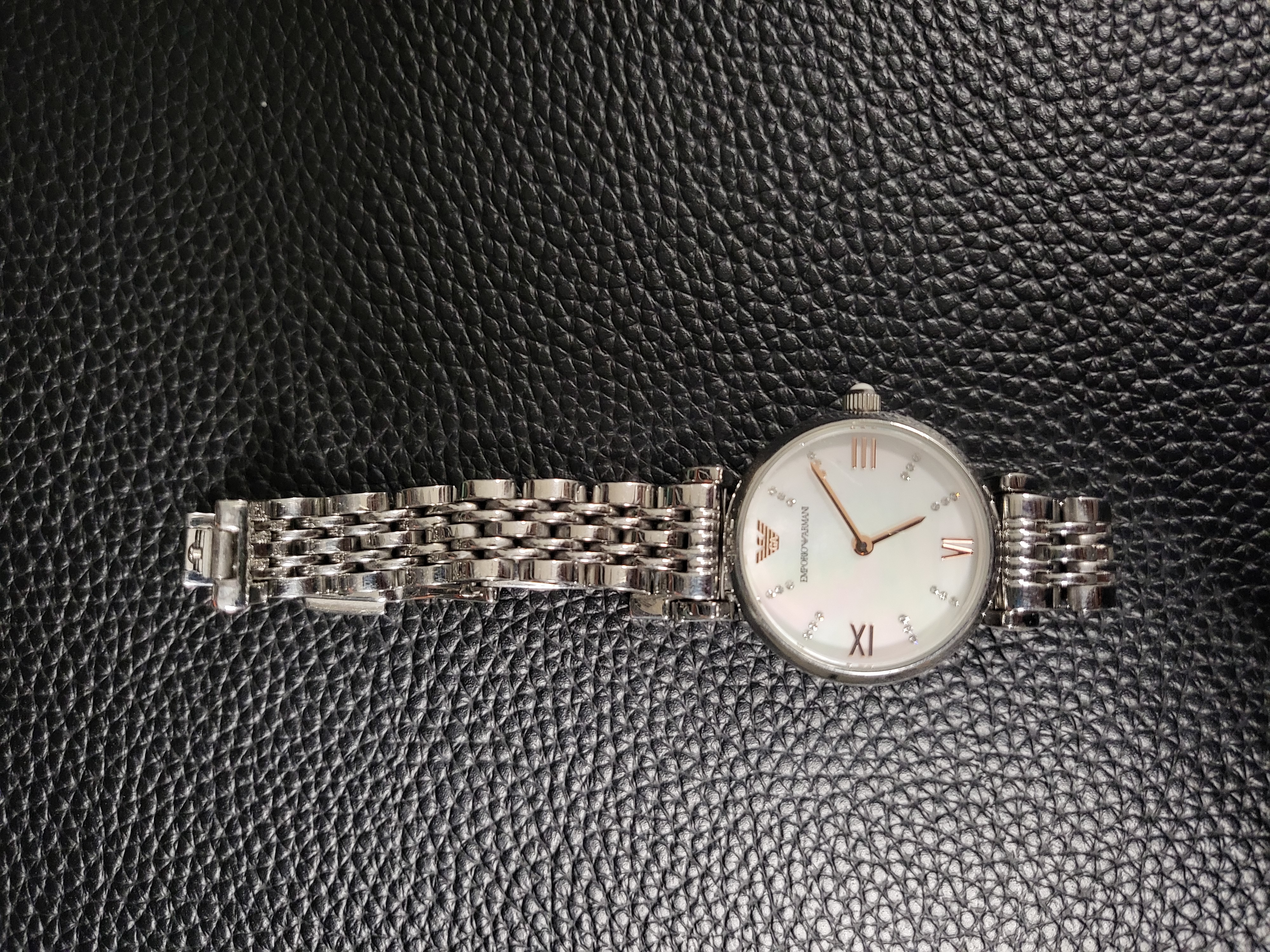 01 đồng hồ kim loại màu trắng (emporio armani), ngày 01/02//2023