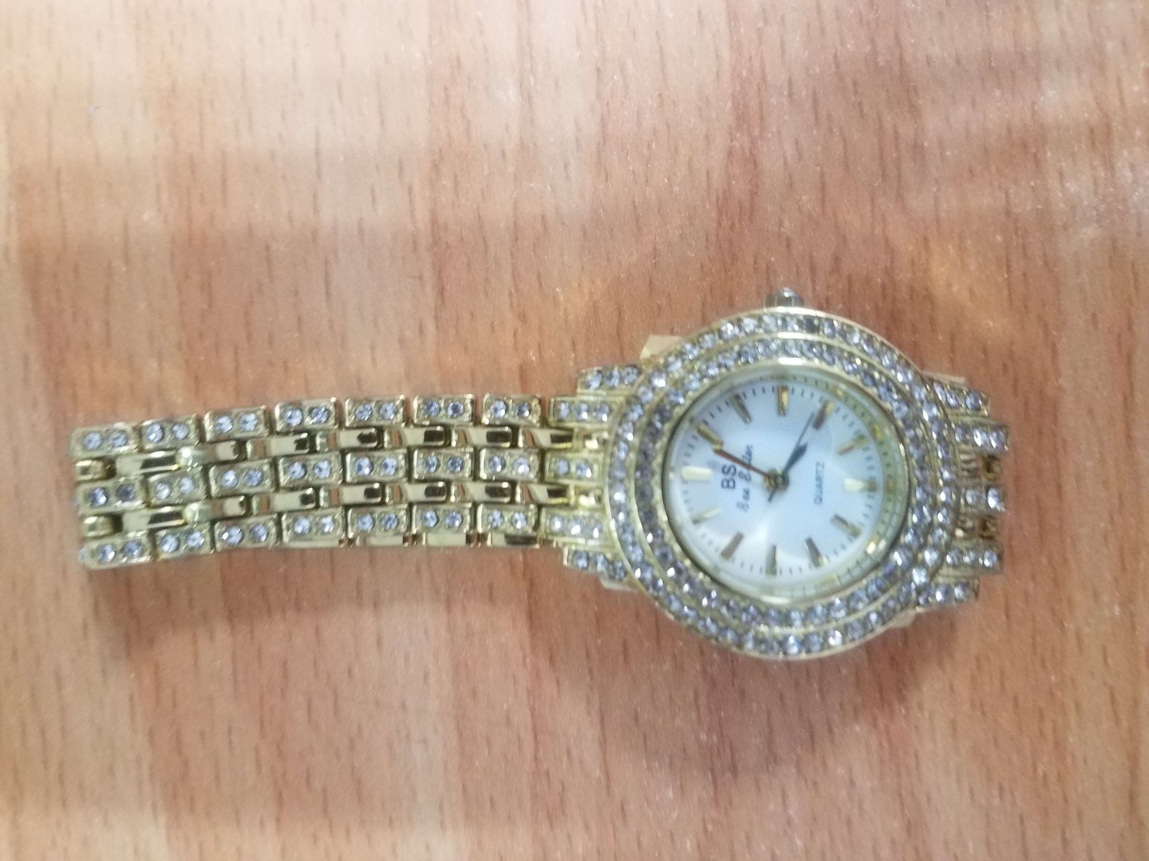 01 đồng hồ kim loại màu vàng, có đính đá hiệu QUARTZ, ngày 01/04//2023