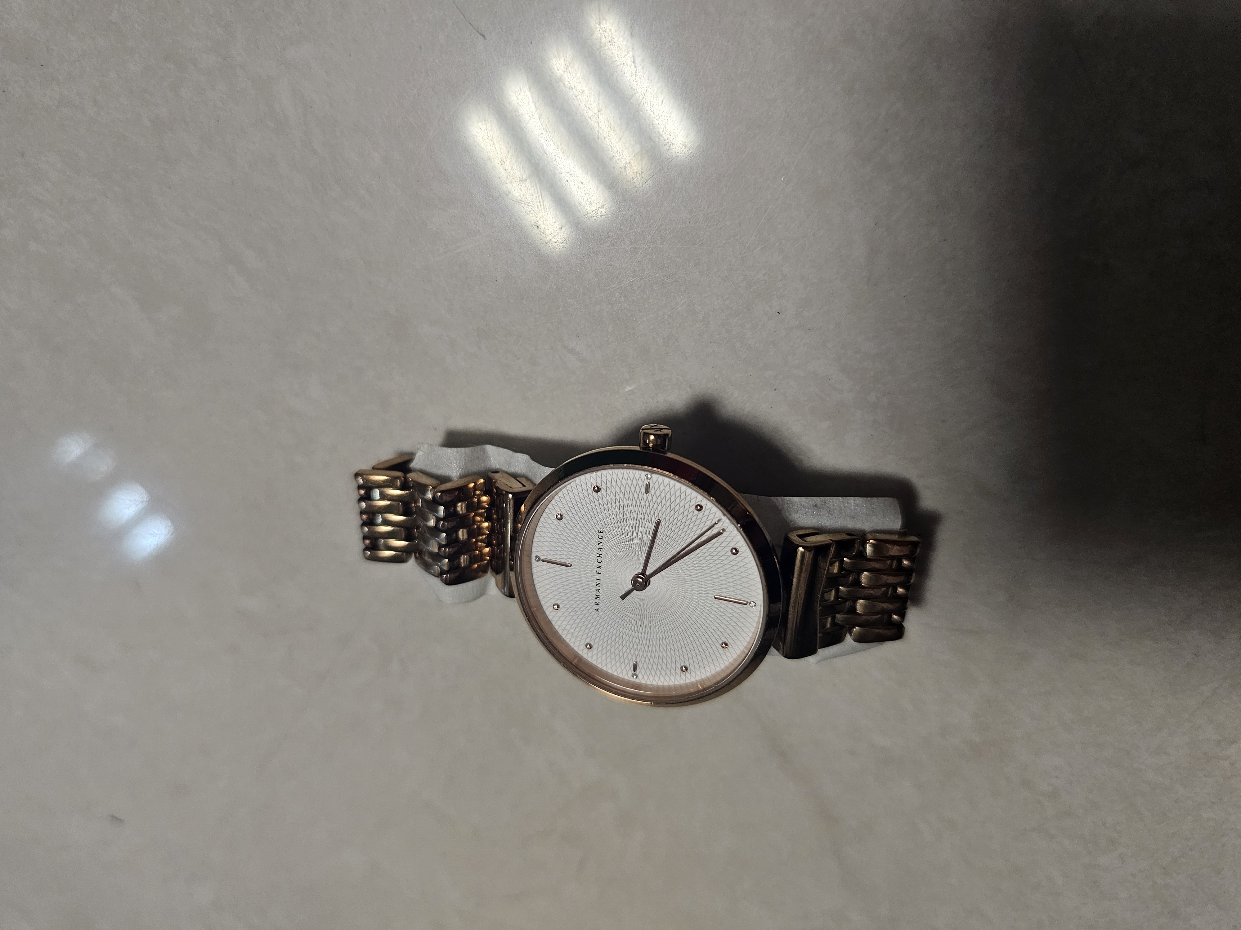 01 đồng hồ kim loại màu vàng hiệu ARMANI EXCHANGE, được tìm thấy vào ngày 30/04/2025