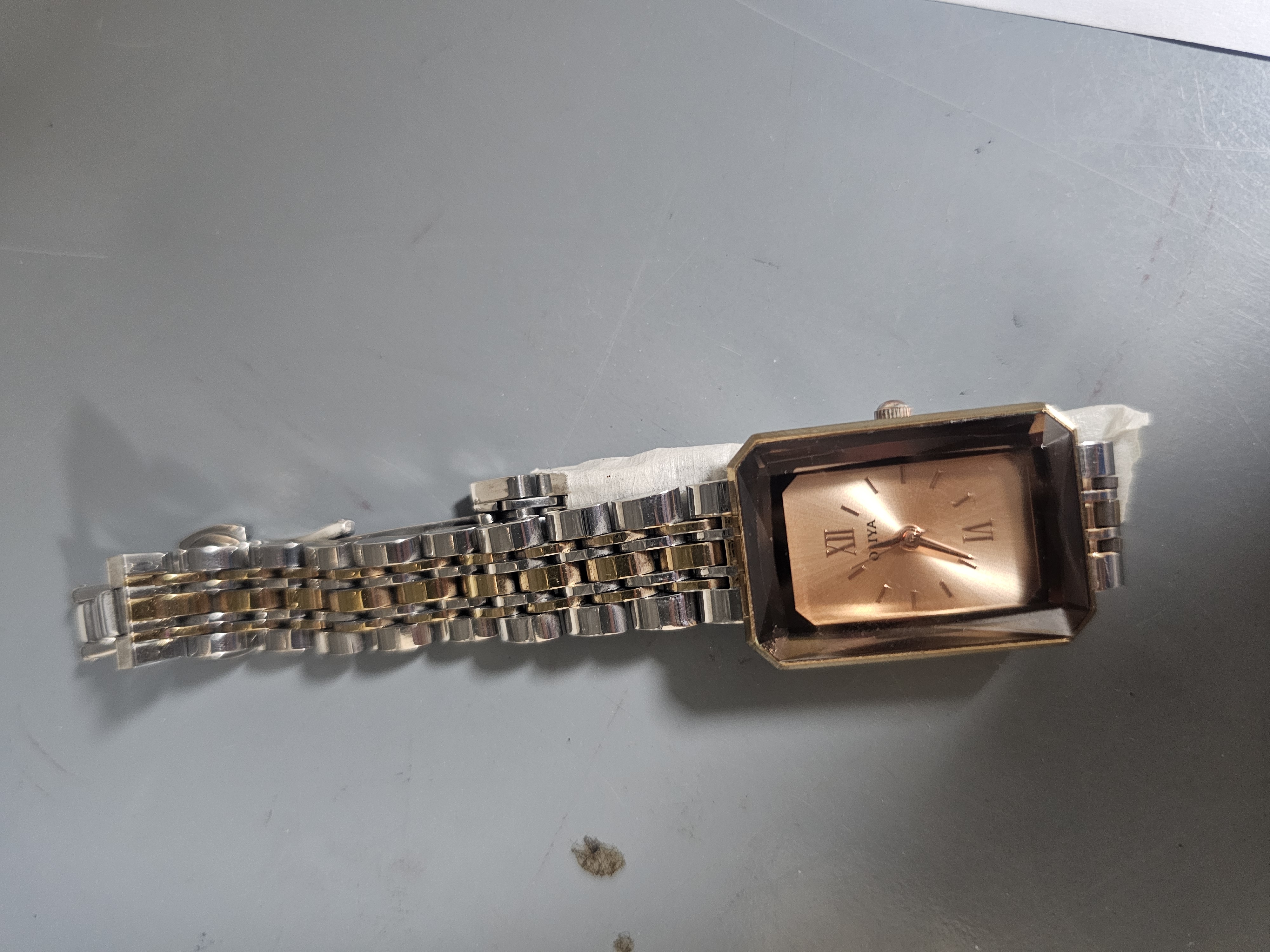 01 đồng hồ kim loại màu vàng trắng hiệu Oliya, được tìm vào ngày 05/08/2025