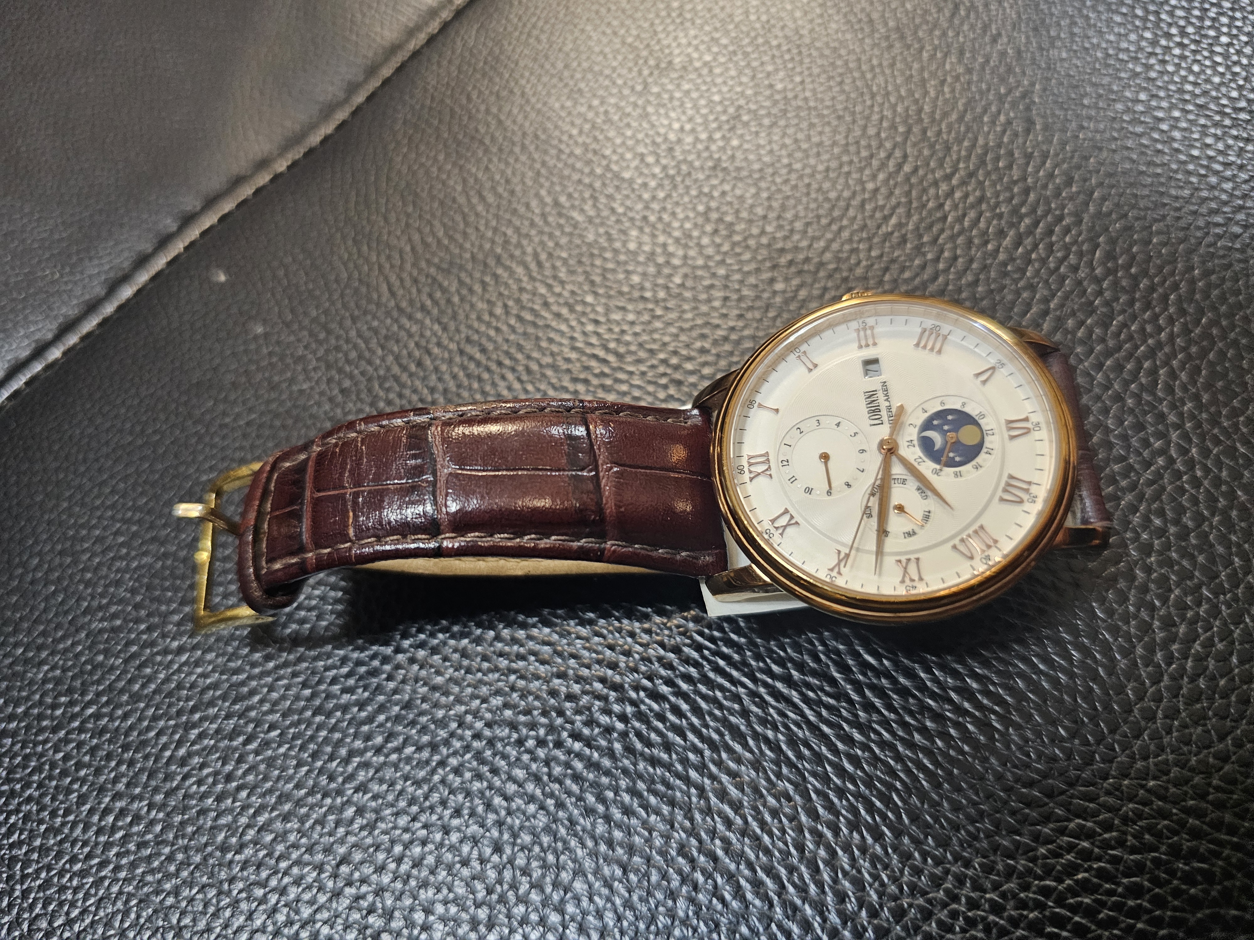 01 đồng hồ màu vàng hiệu lobinni dây màu nâu, được tìm thấy vào ngày 26/08/2024, ở ANSC HLXT quốc nội