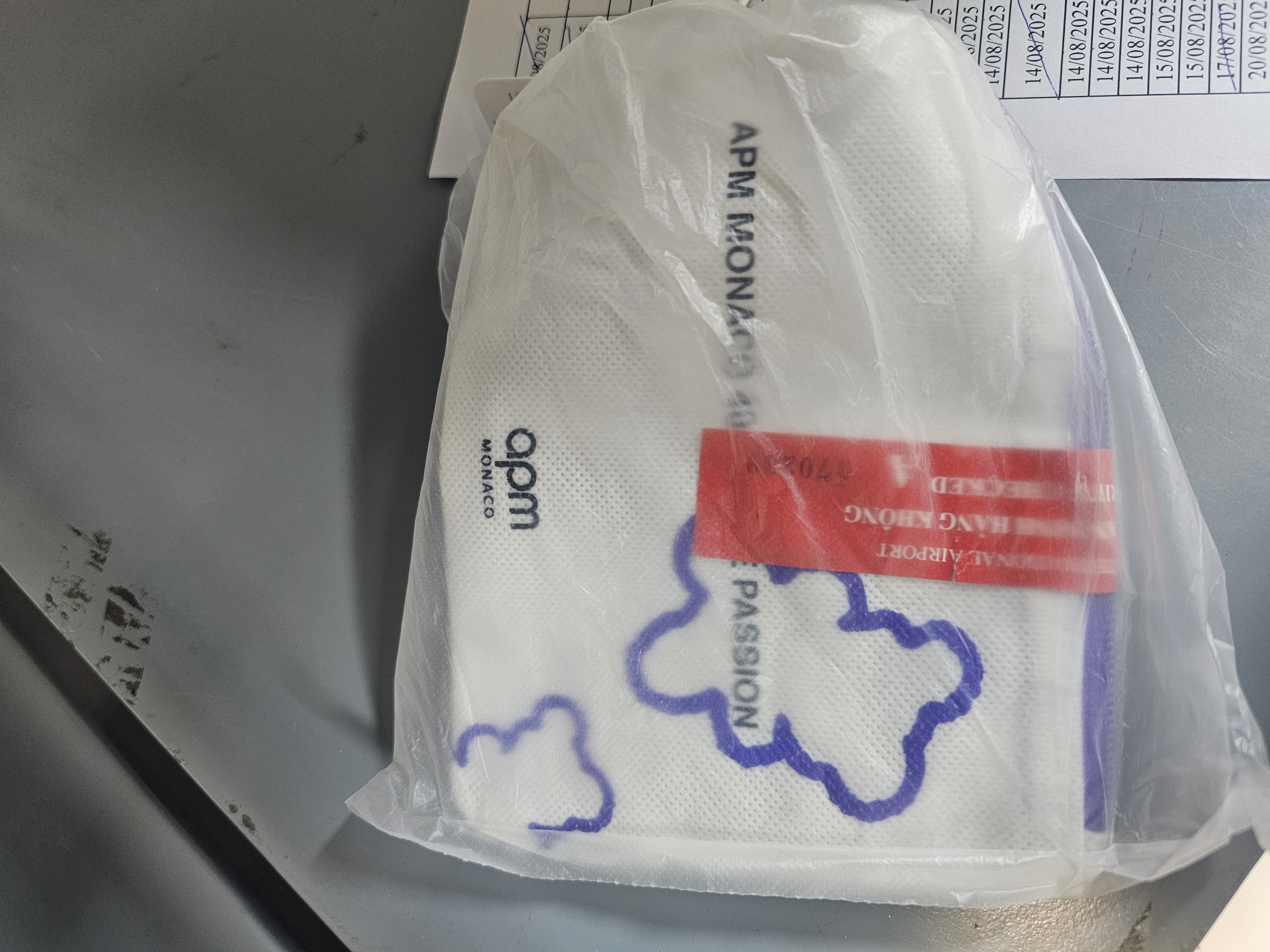 01 ví nhỏ màu trắng - tím, được tìm thấy tại Phòng chờ cách ly quốc tế vào ngày 04/08/2025