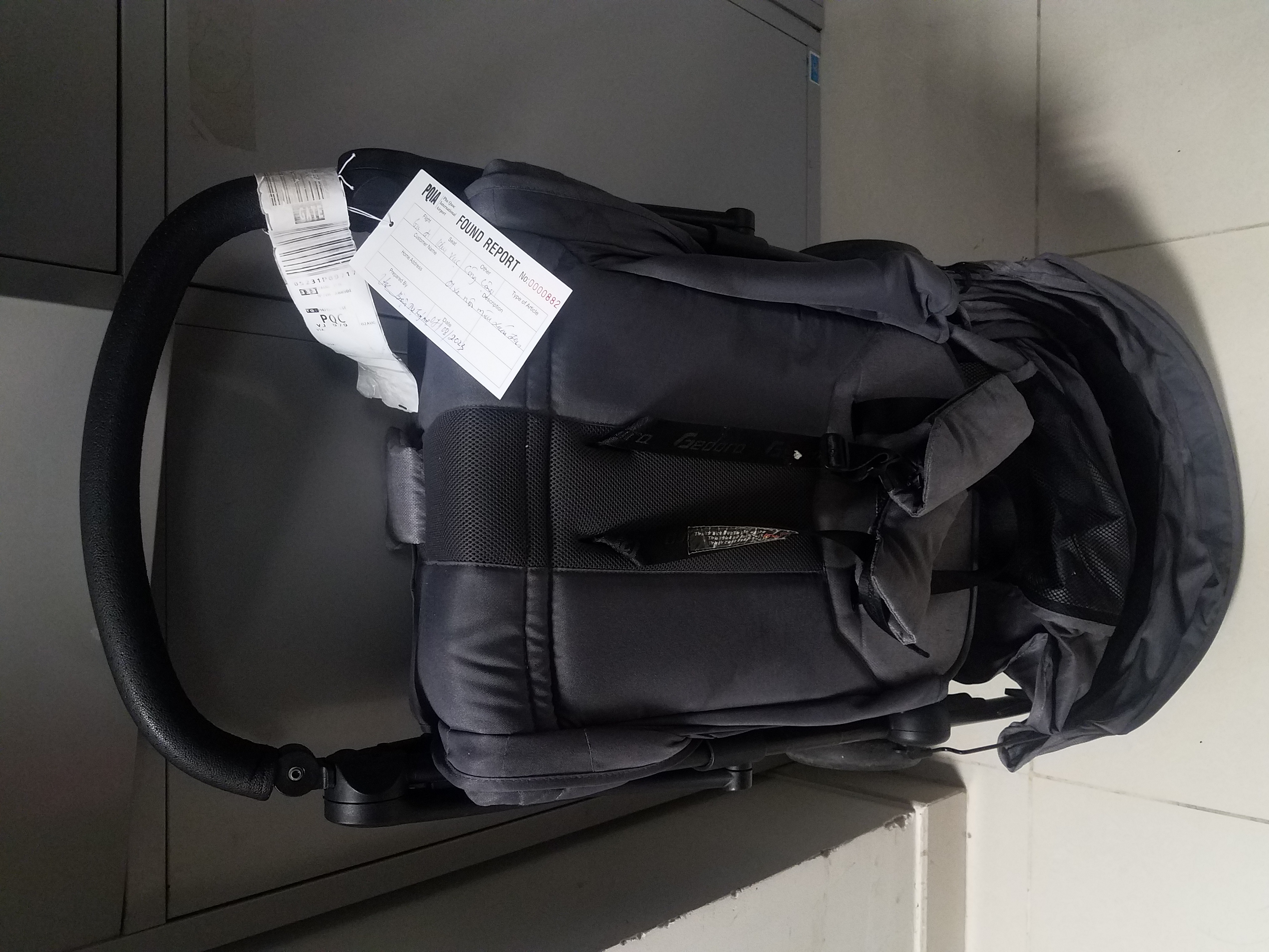 01 xe nôi màu xám đen, tại khu vực công cộng (ga đi) ngày 07/08/2023 (đêm ngày 06/08/2023)