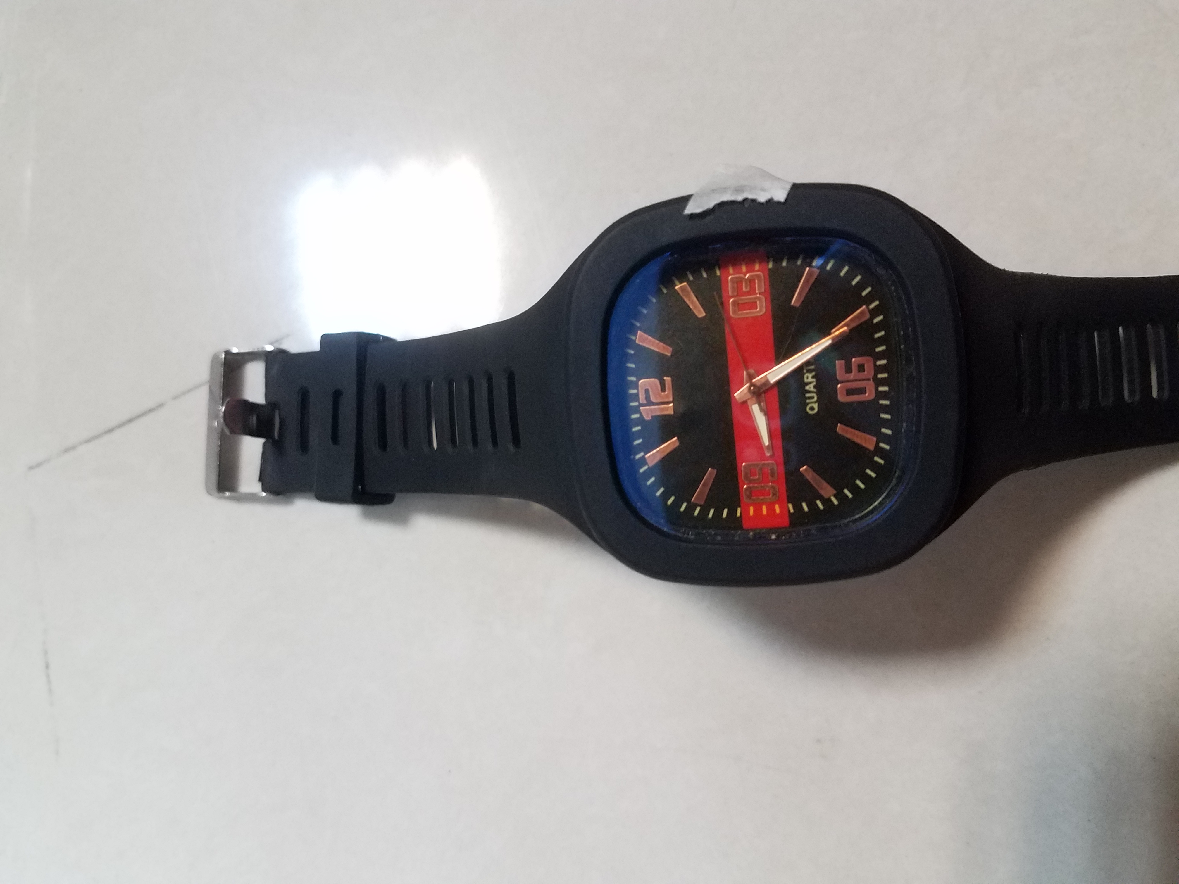 đồng hồ hiệu Quartz dây đeo nhựa màu đen, ngày 26/06/2023