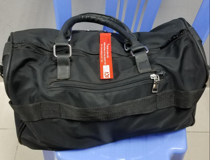 01 túi du lịch màu đen khách quên ở cách ly quốc nội.