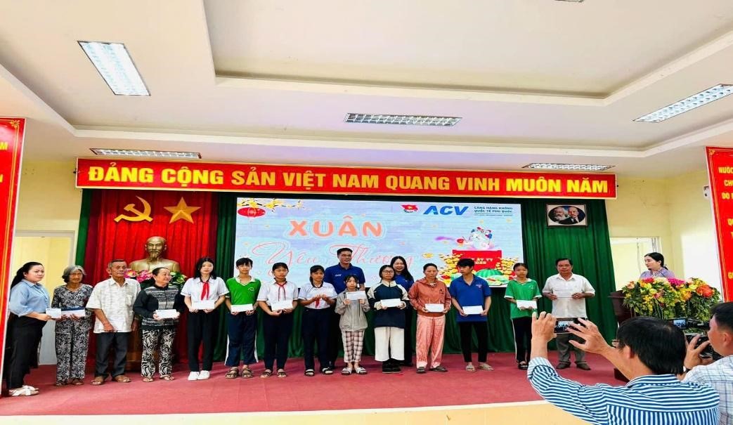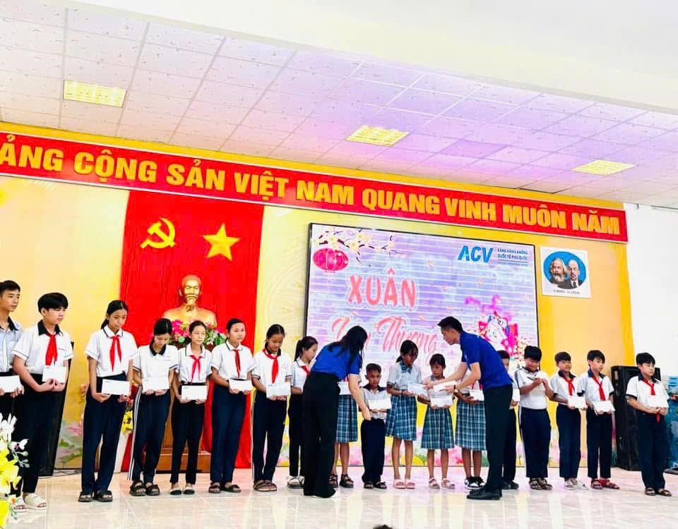 Bên cạnh đó, Cảng HKQT Phú Quốc phối hợp với Công đoàn cùng Đoàn Thanh niên Cảng HKQT Phú Quốc đã tổ chức chương trình “Xuân Yêu Thương 2025” tại các xã phường trên địa bàn thành phố Phú Quốc. Tặng 200 phần quà tết (500.000 đồng/ phần quà) đã được trao tận tay cho các em học sinh nghèo và các gia đình có hoàn cảnh khó khăn.