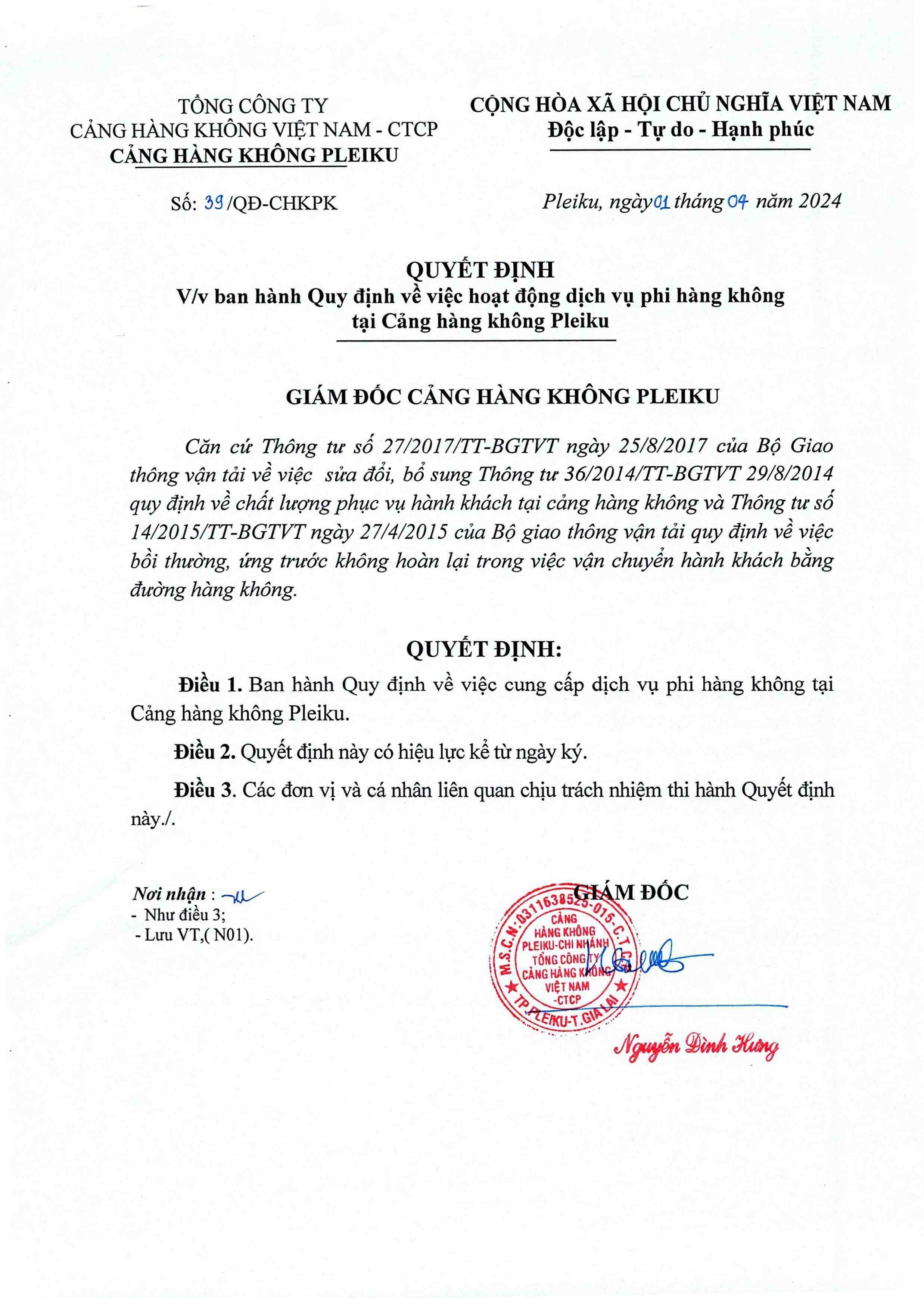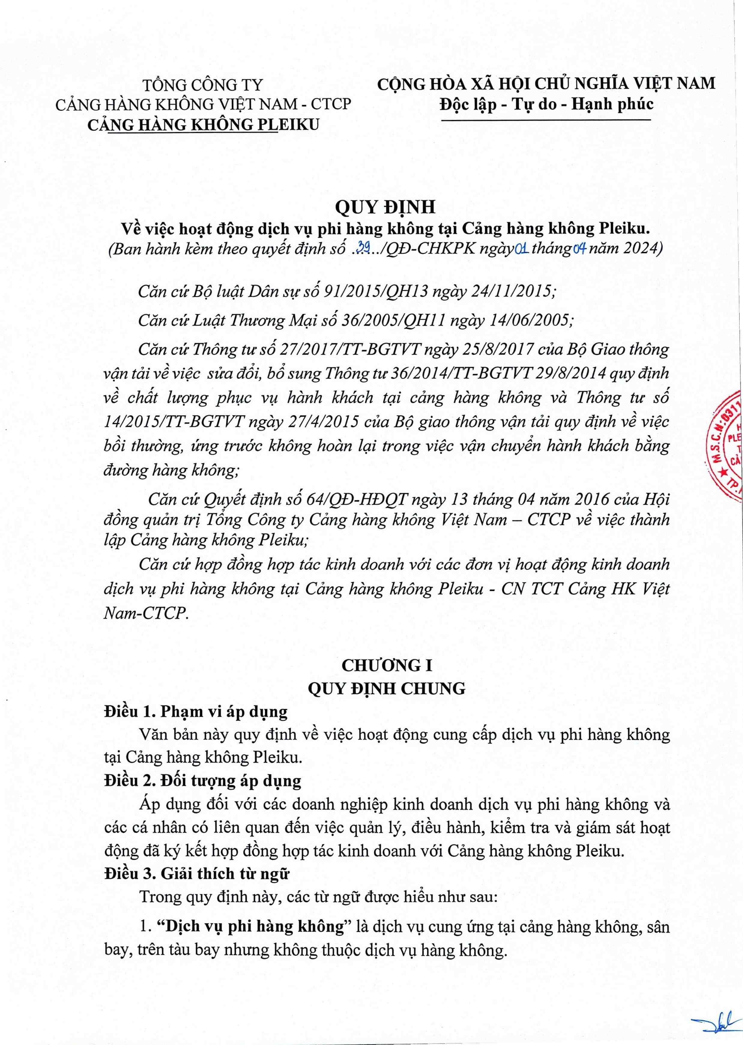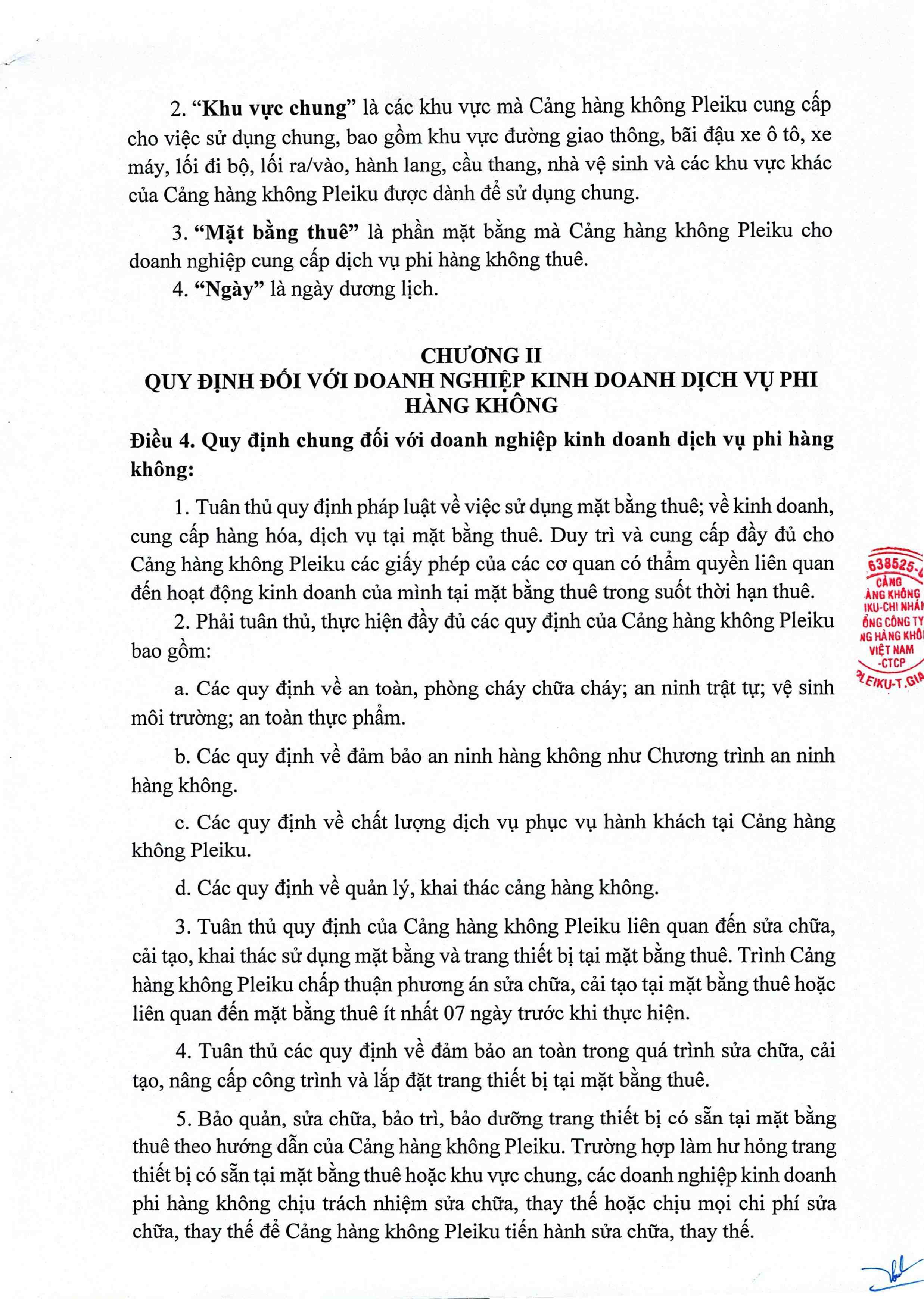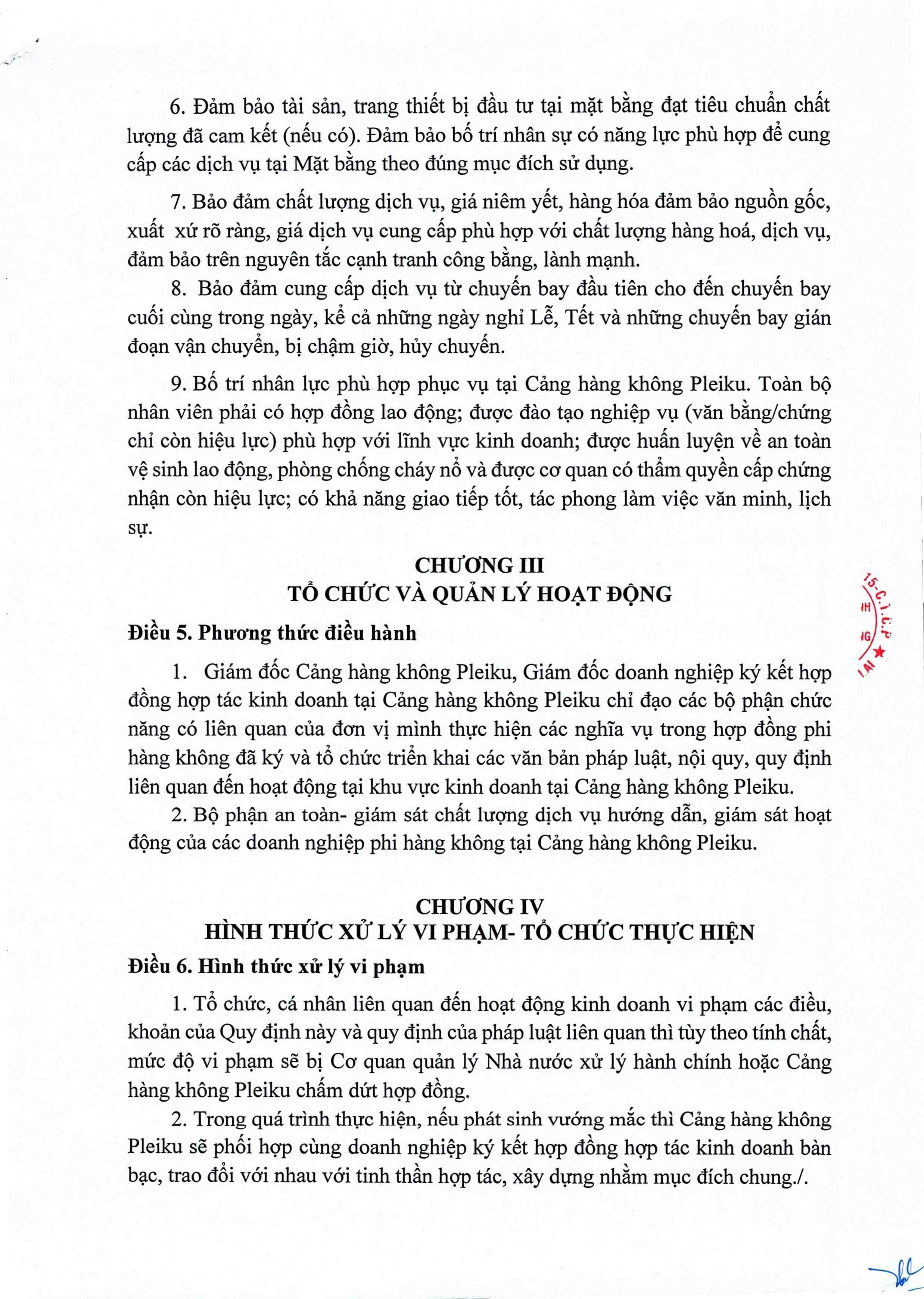Quy định về việc hoạt động dịch vụ phi hàng không tại Cảng hàng không Pleiku