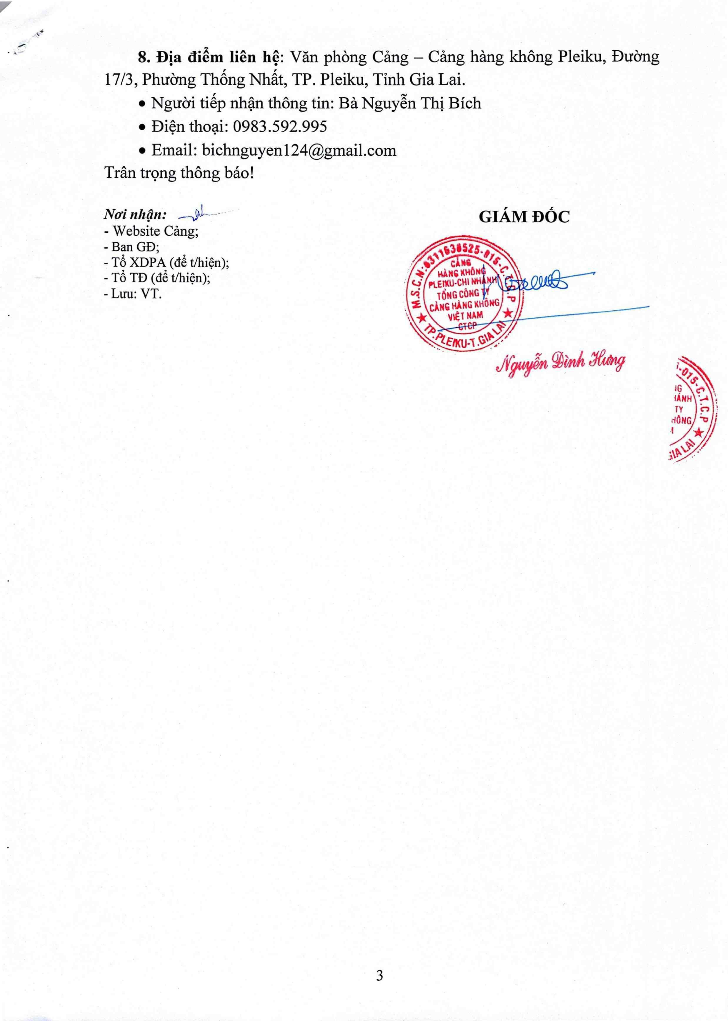 Thông báo mời chào giá về việc "Sửa chữa, cải tạo hệ thống cáp mạng SCN tại phòng kỹ thuật - Nhà ga hành khách Cảng hàng không Pleiku"
