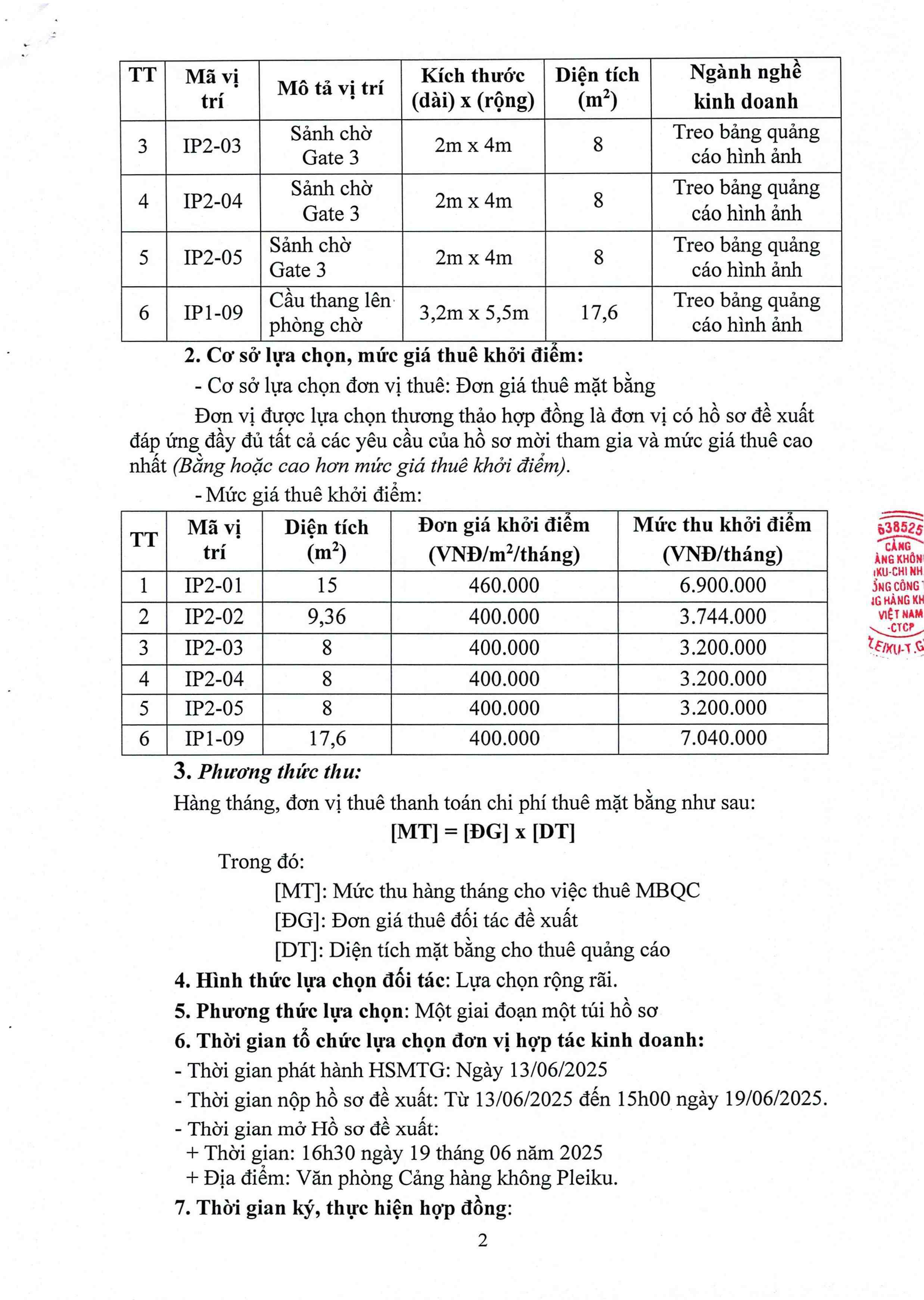 Thông báo kế hoạch lựa chọn đơn vị thuê mặt bằng quảng cáo khu vực Ga quốc nội - Khu cách ly tại Cảng hàng không Pleiku