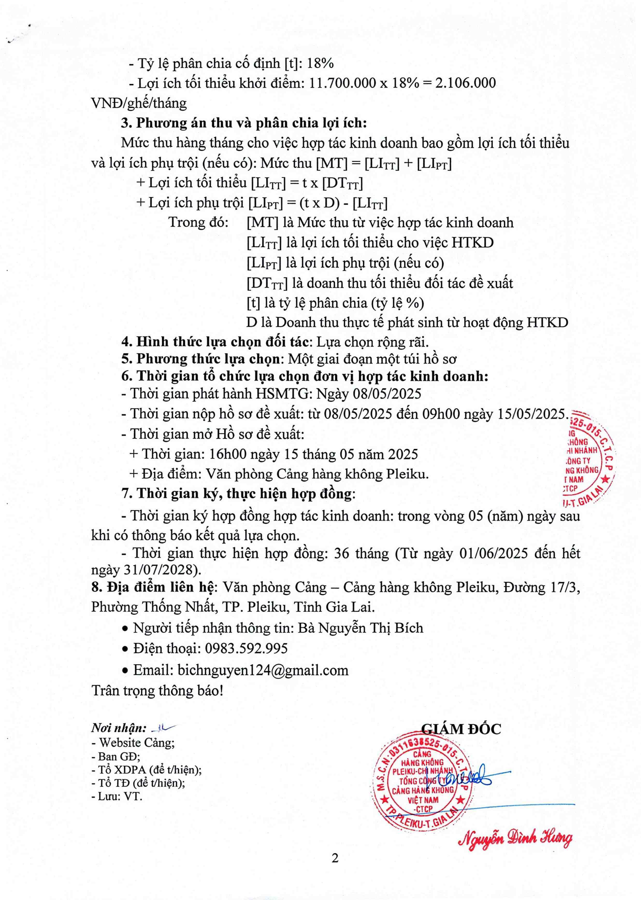 Thông báo mời chào giá: Kế hoạch lựa chọn đơn vị hợp tác kinh doanh mặt bằng cung ứng dịch vụ ghế massage tự động tại Cảng hàng không Pleiku