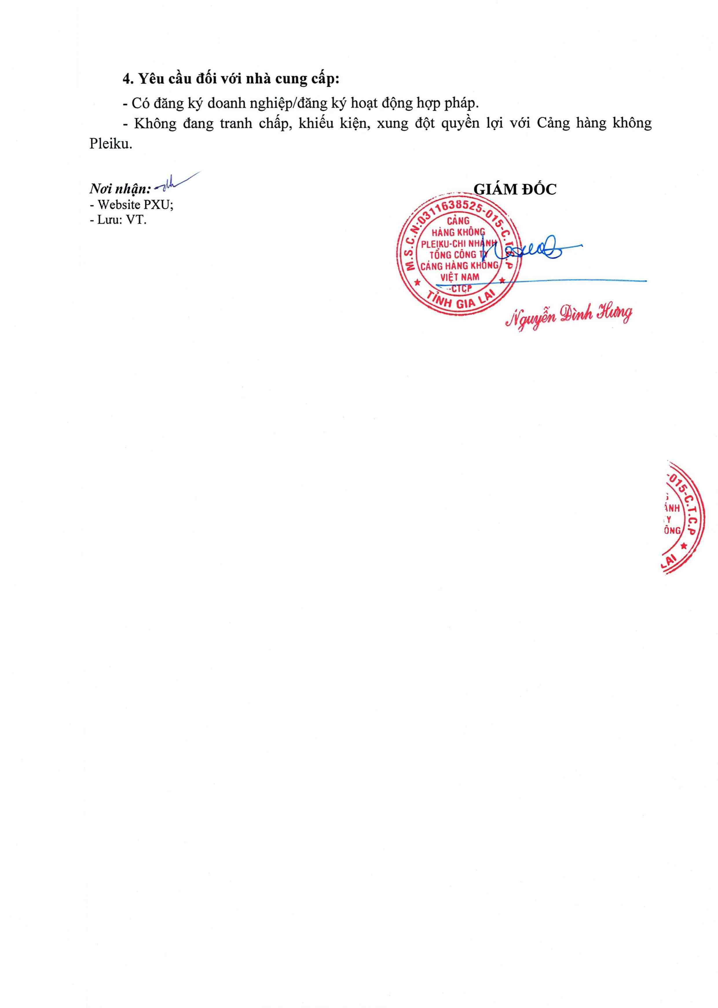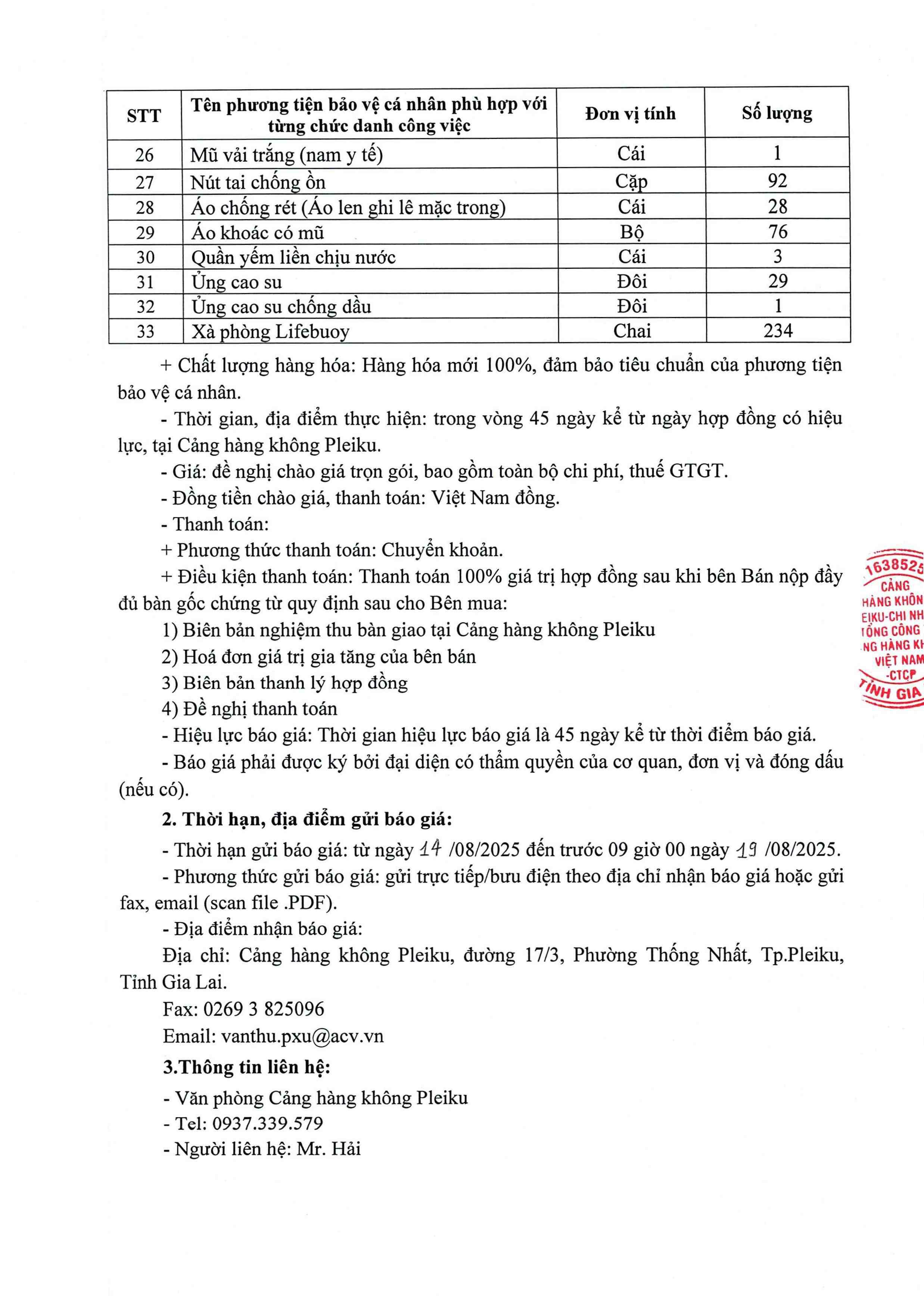 Thông báo mời chào giá về việc "Bảo dưỡng định kỳ hệ thống xử lý nước thải sinh hoạt 06 tháng cuối năm 2025 tại Cảng hàng không Pleiku"