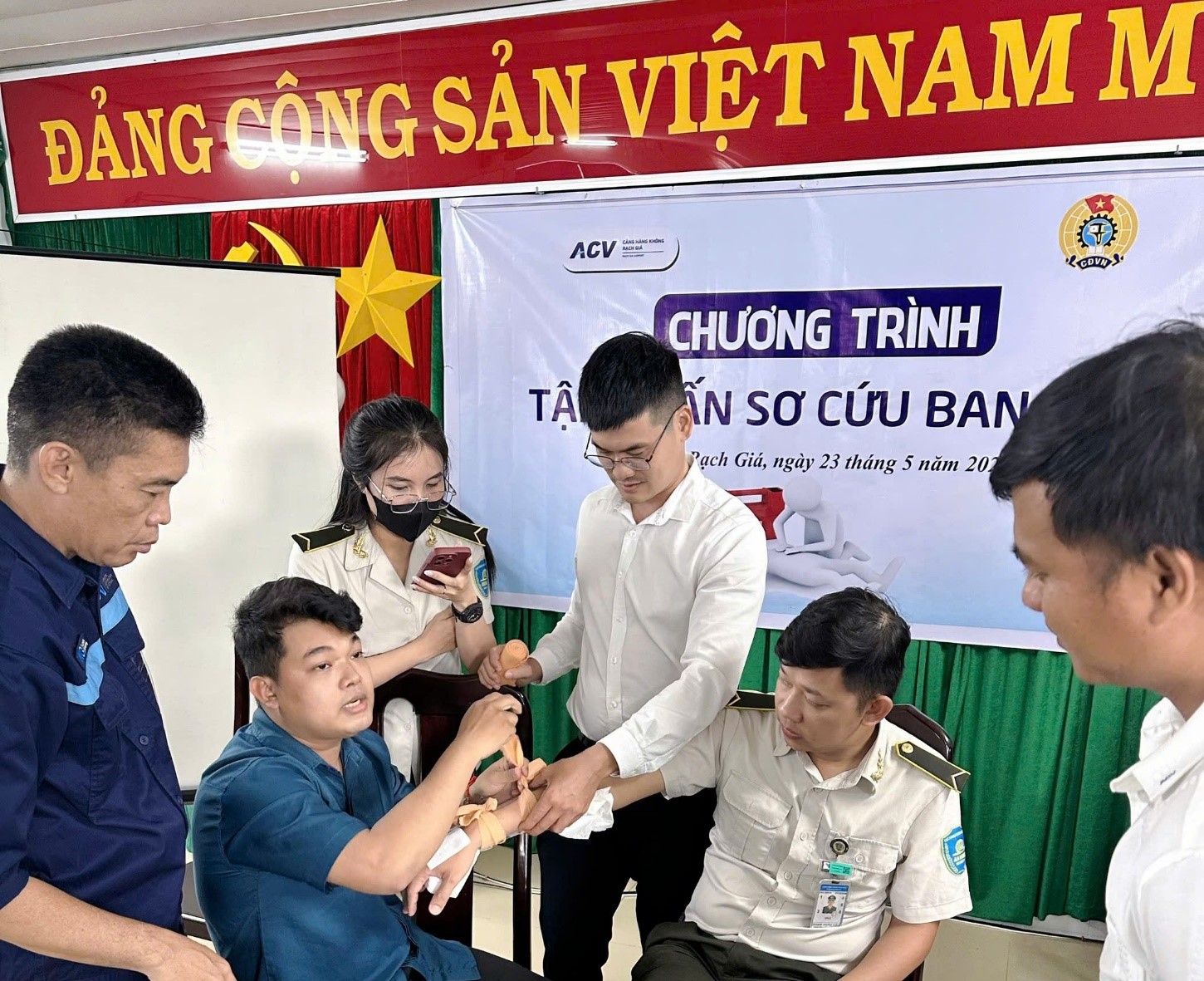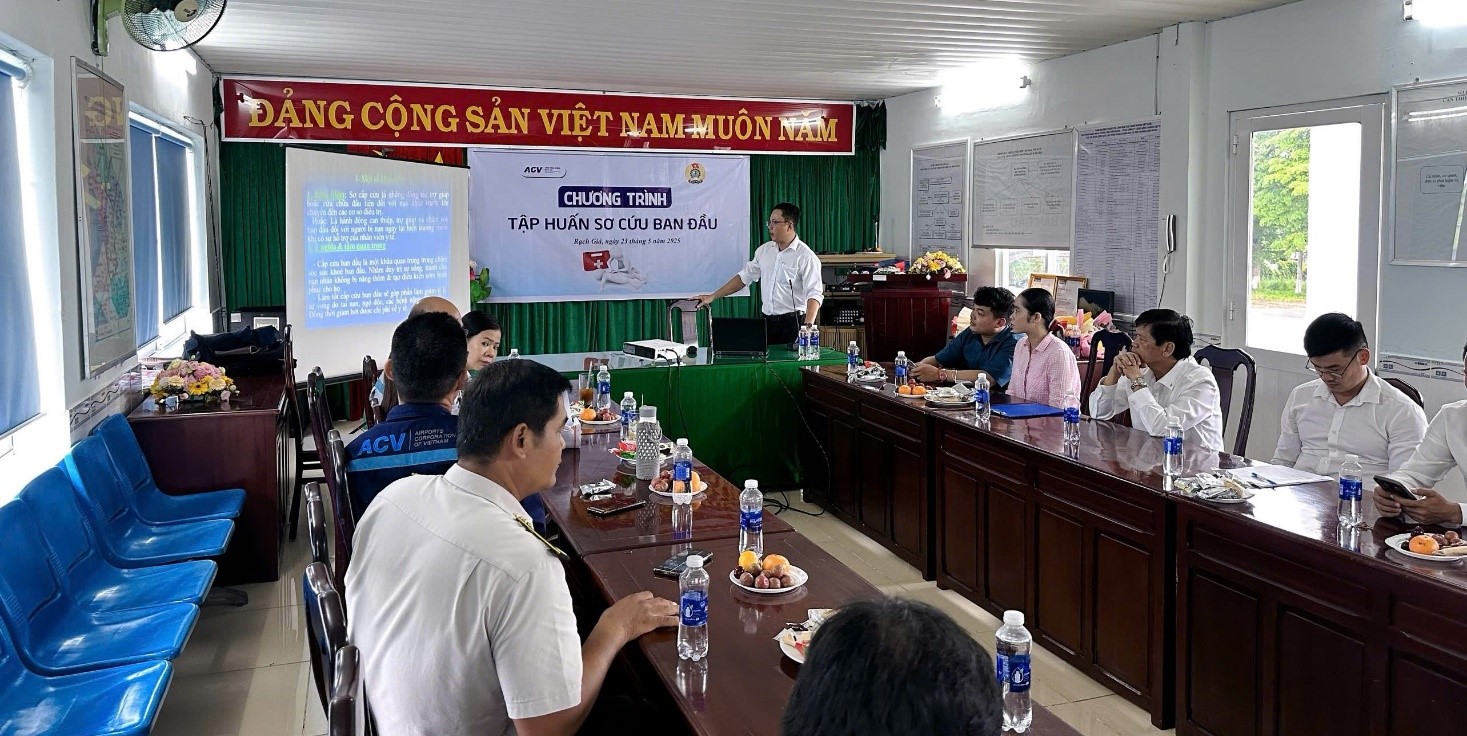 Nhằm nâng cao kỹ năng xử lý tình huống khẩn cấp và đảm bảo an toàn cho hành khách cũng như đội ngũ nhân viên trong quá trình làm việc, Cảng hàng không Rạch Giá đã tổ chức lớp “Tập huấn sơ cứu ban đầu” cho toàn thể cán bộ, công nhân viên vào ngày 23/5/2025.