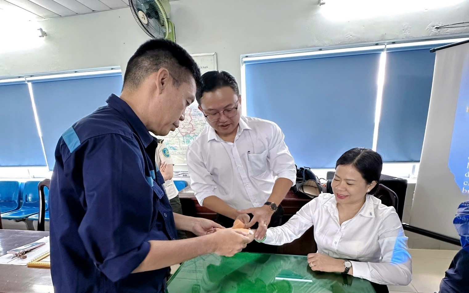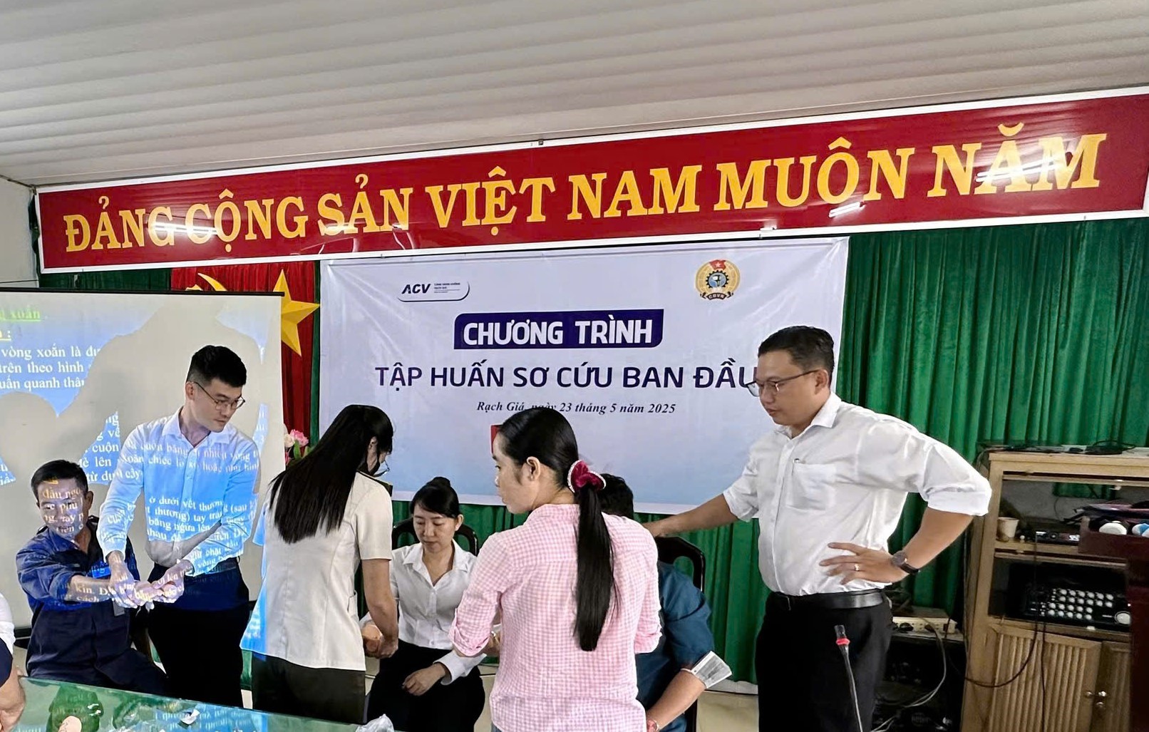 Buổi tập huấn do Trung tâm Y tế huyện Châu Thành - tỉnh Kiên Giang phối hợp thực hiện, với sự tham gia hướng dẫn của các chuyên viên y tế có kinh nghiệm trong lĩnh vực sơ cấp cứu.