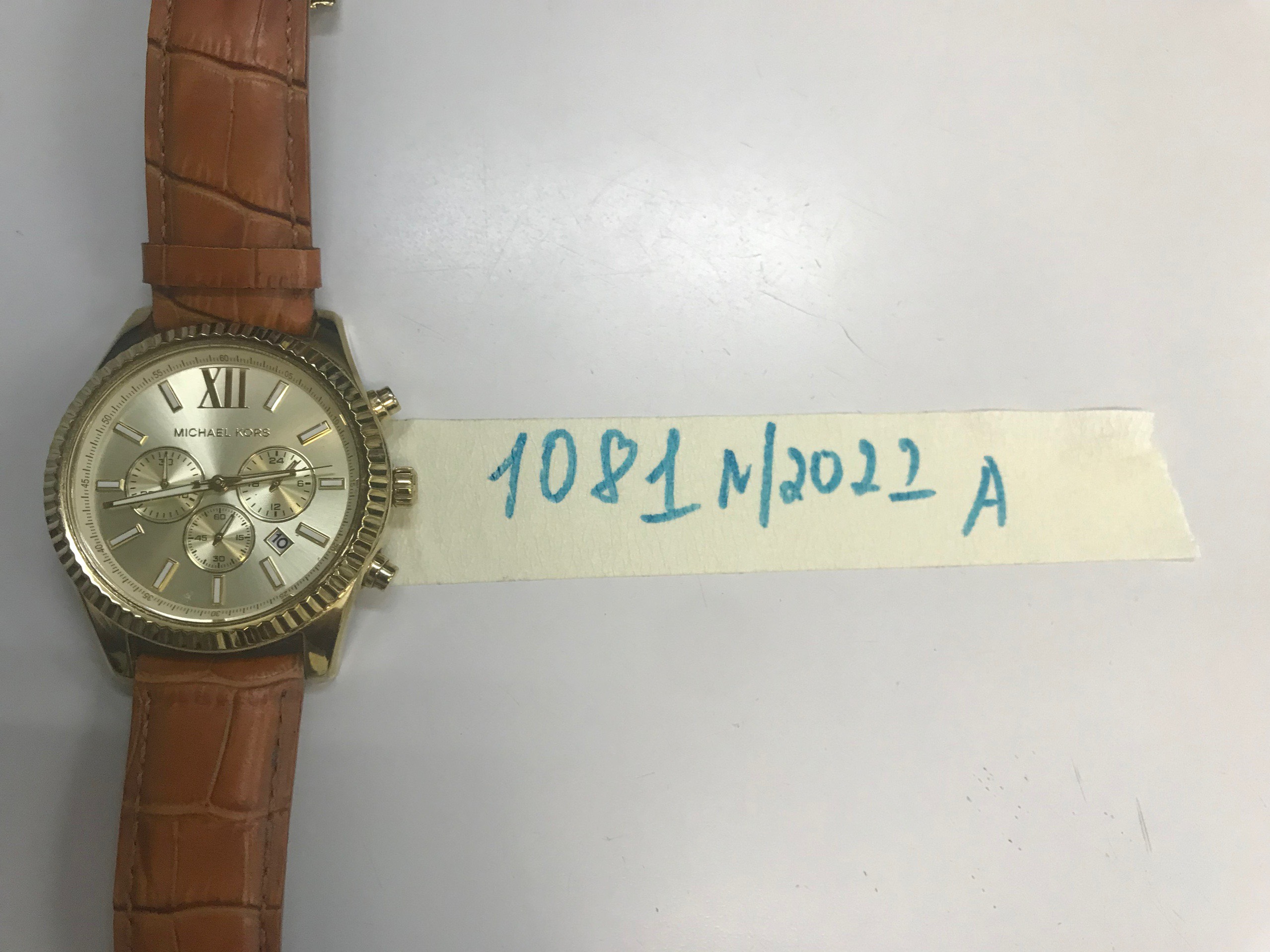 Ngày tiếp nhận: 11/11/2022 Mô tả: 01 đồng hồ dây da màu nâu có chữ Michael Kors. Đã sử dụng. Vị trí: An ninh soi chiếu quốc tế |