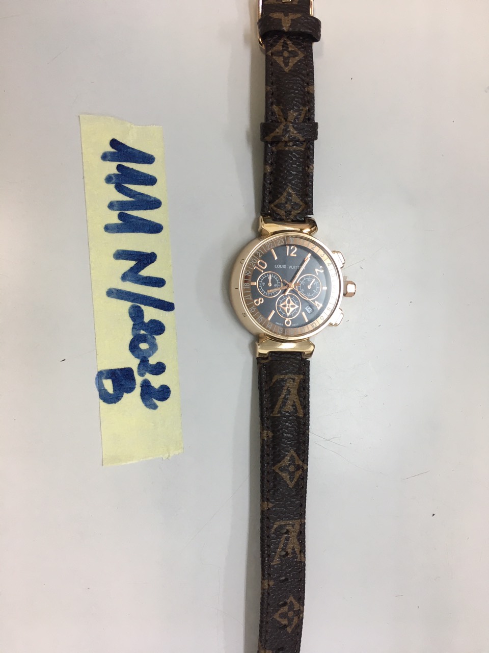 Ngày tiếp nhận: 16/11/2022 Mô tả: 01 đồng hồ dây da nâu Louis Vuitton. Vị trí: An ninh soi chiếu quốc tế |
