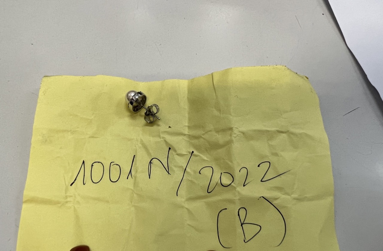 Ngày tiếp nhận: 24/10/2022 Mô tả: 01 bông tai kim loại màu trắng đính hạt màu trắng. Vị trí: An ninh trật tự quốc tế |