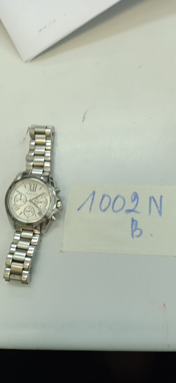 Ngày tiếp nhận: 24/10/2022 Mô tả: 01 đồng hồ đeo tay MICHEAL KORS (MK-6174) mặt tròn, dây kim loại đã sử dụng. Vị trí: An ninh soi chiếu quốc tế |