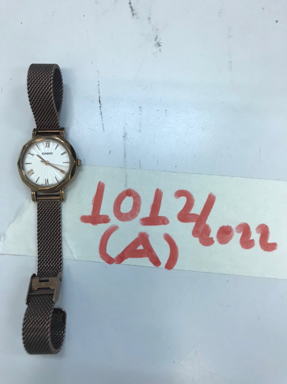 Ngày tiếp nhận: 27/10/2022 Mô tả: 01 đồng hồ kim loại màu vàng có chữ CASIO đã sử dụng. Vị trí: An ninh soi chiếu quốc nội |