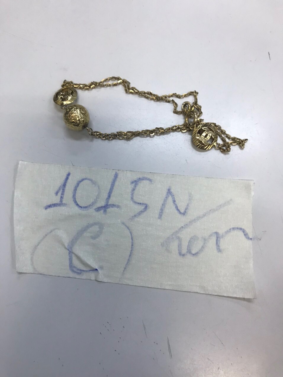 Ngày tiếp nhận: 28/10/2022 Mô tả: 01 lắc tay kim loại màu vàng. Vị trí: An ninh soi chiếu quốc nội |
