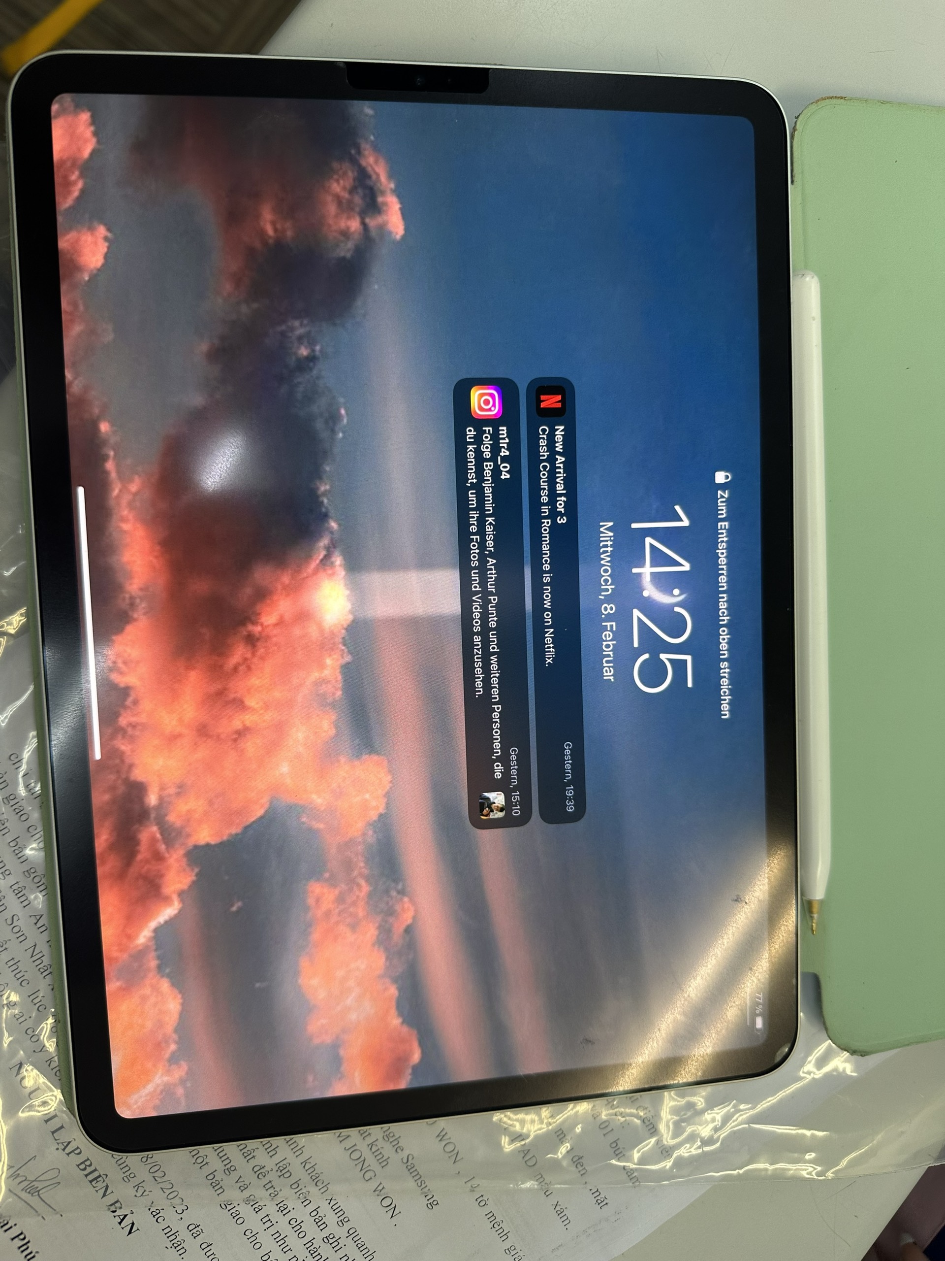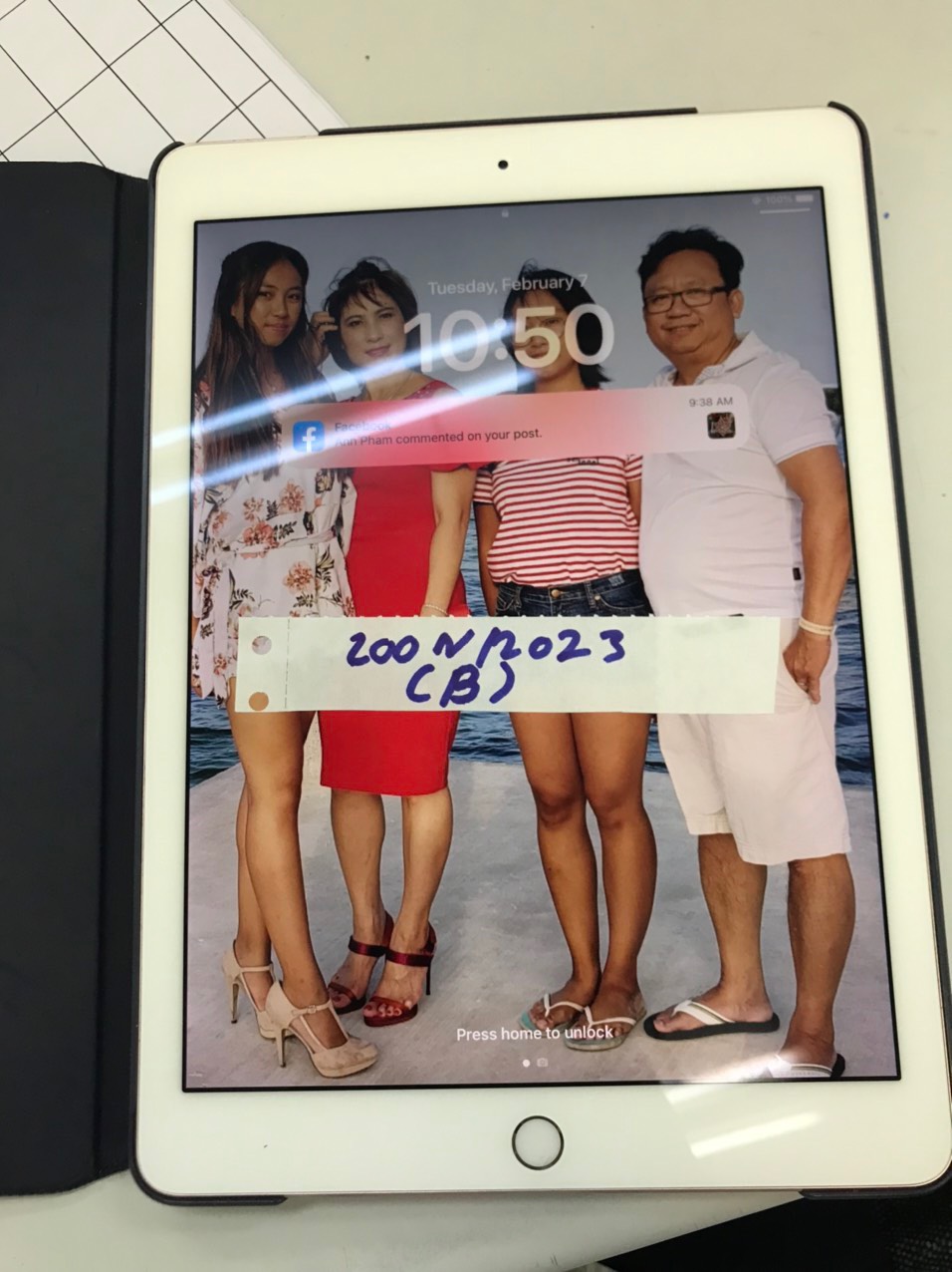 Ngày tiếp nhận: 08/02/2023 Mã hồ sơ: 201N2023A Mô tả: 01 IPAD màu trắng kèm vỏ màu xanh lá và 01 bút cảm ứng. Vị trí: An ninh soi chiếu quốc tế |