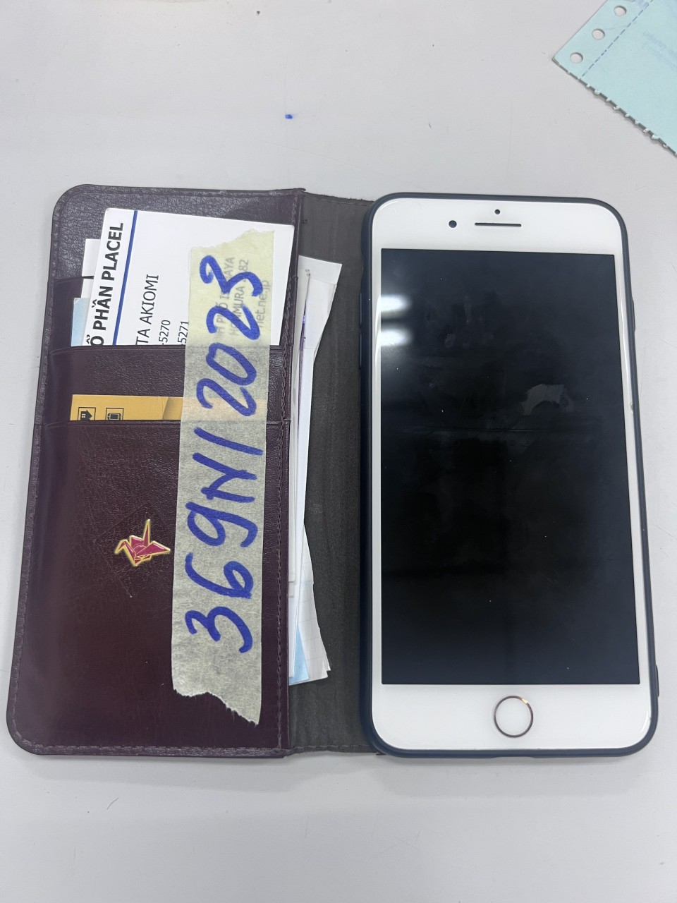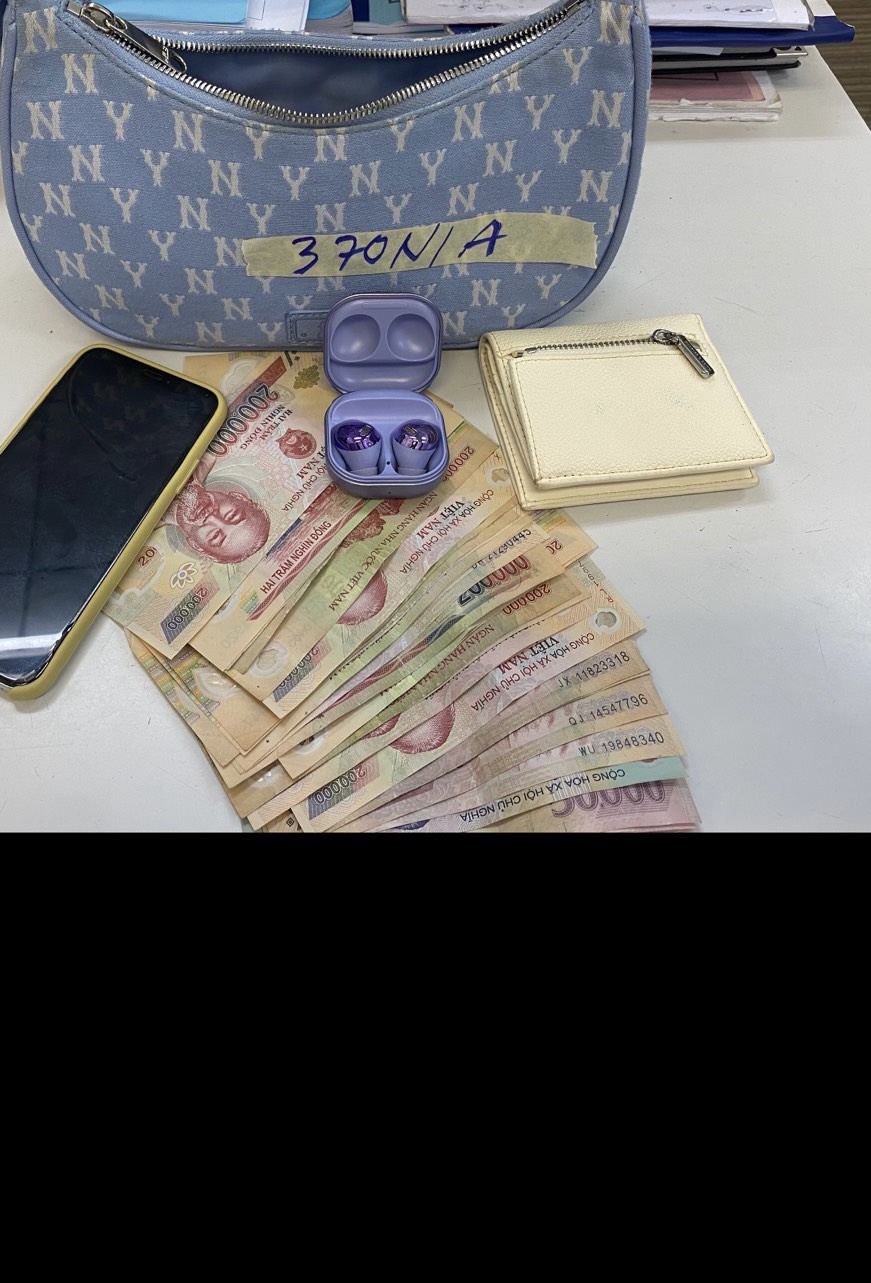 | 23 | Ngày tiếp nhận: 12/03/2023 Mã hồ sơ: 370N2023A Mô tả: 01 túi đeo màu xanh có: + 01 điện thoại IPHONE màu trắng đã qua sử dụng có ốp vàng, + 01 tai nghe không dây SAM SUNG vỏ màu tím, + 01 ví nhỏ màu trắng bên trong có: 01 tờ 500.000 VND, 25 tờ 200.000 VND, 01 tờ 50.000 VND cùng một số mỹ phẩm đã qua sử dụng khác. Vị trí: An ninh soi chiếu quốc nội |