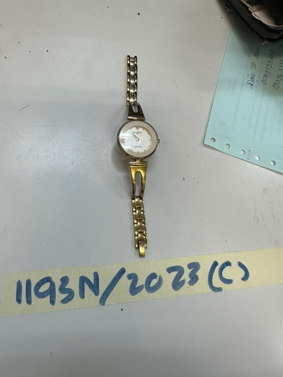 Ngày tiếp nhận: 22/8/2023 Mã hồ sơ: 1195N2023 Mô tả: 01 máy tính bảng có nhãn chữ iPad + 01 bao ngoài bằng nhựa màu hồng. Vị trí: An ninh trật tự quốc tế |