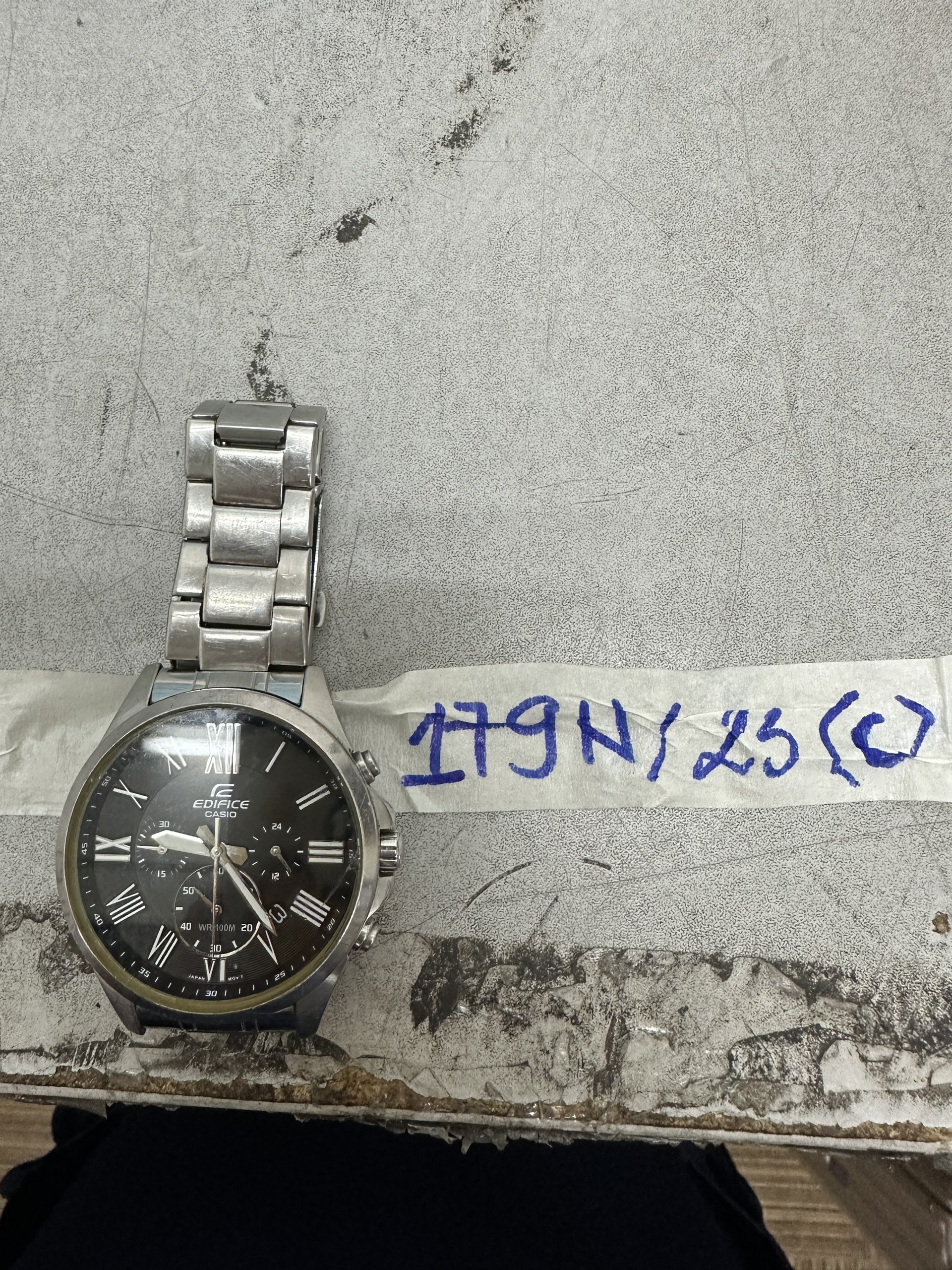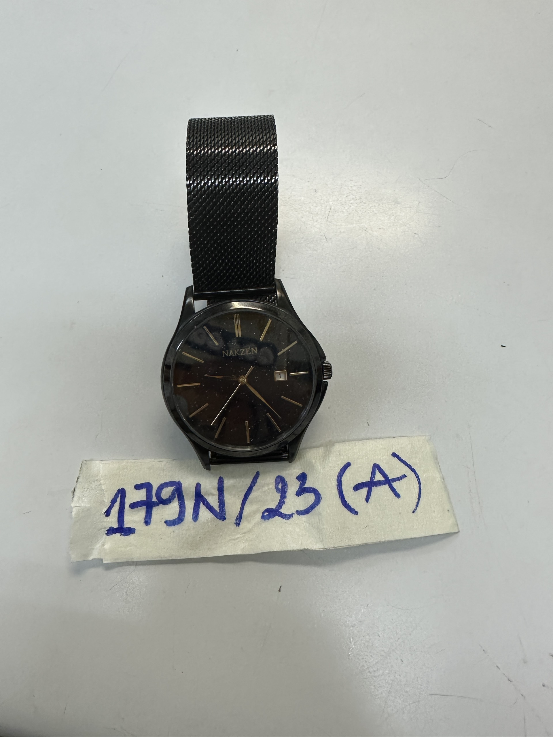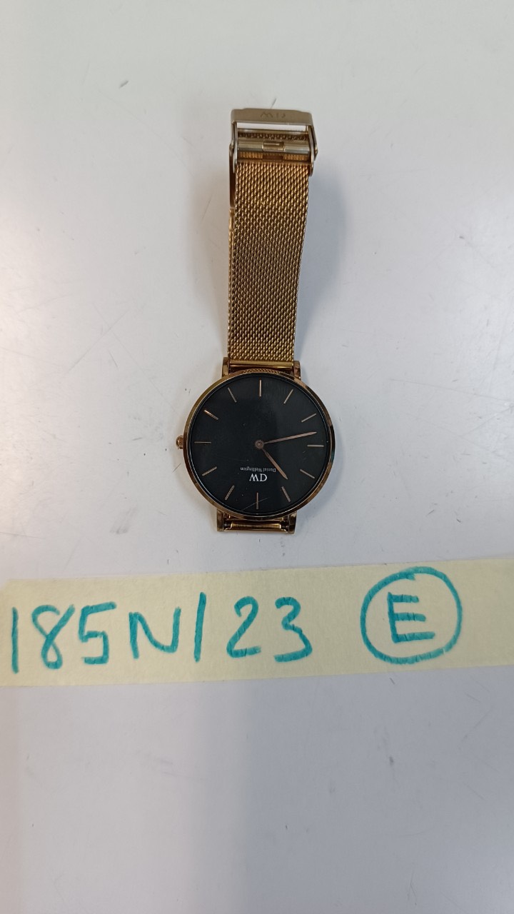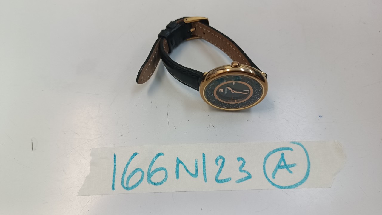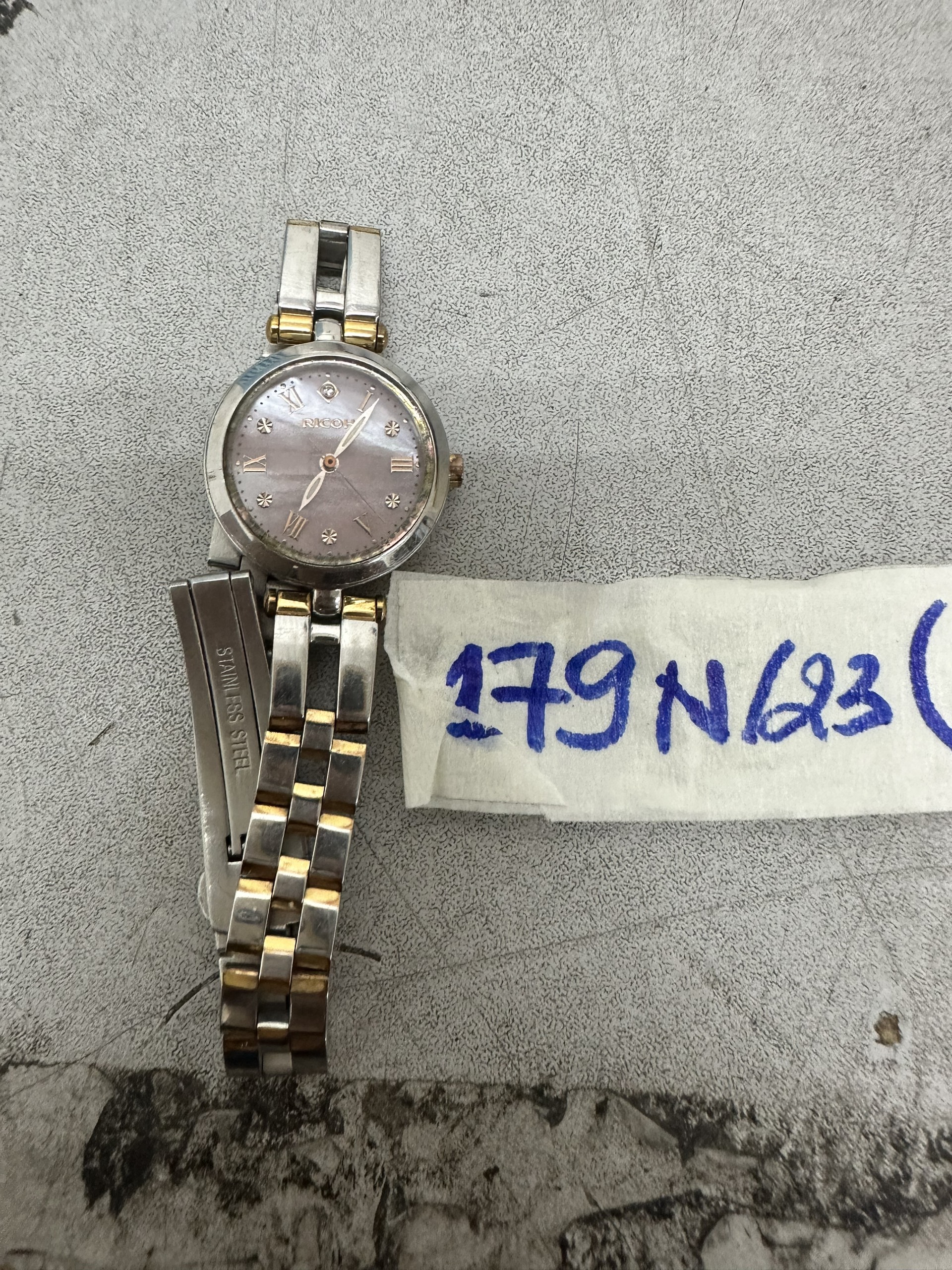 Ngày tiếp nhận: 03/02/2023 Mã hồ sơ: 183N2023C Mô tả: 01 đồng hồ dây kim loại màu vàng, mặt tròn hồng có chữ SUNRISE. Vị trí: An ninh soi chiếu quốc nội |