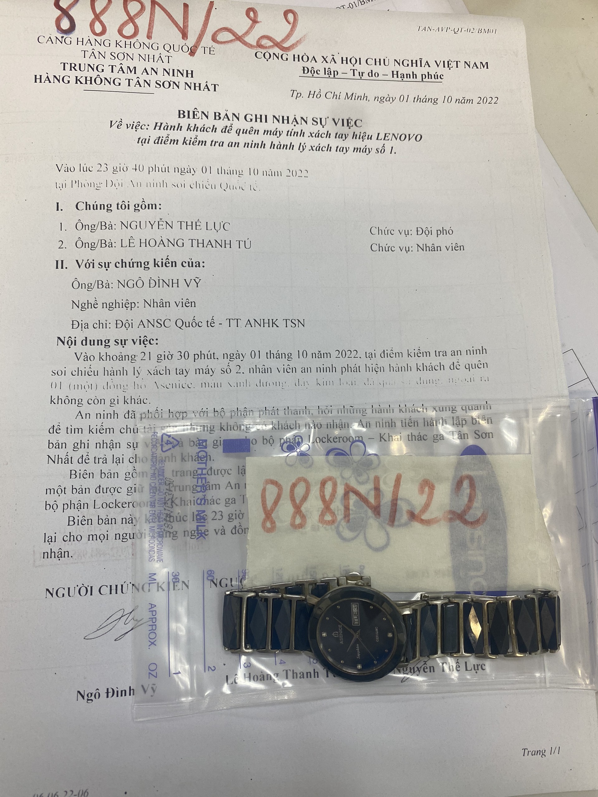 Ngày tiếp nhận: 07/10/2022 Mô tả: 01 đồng hồ dây da HUBLOT đã sd. Vị trí: An ninh soi chiếu quốc nội |
