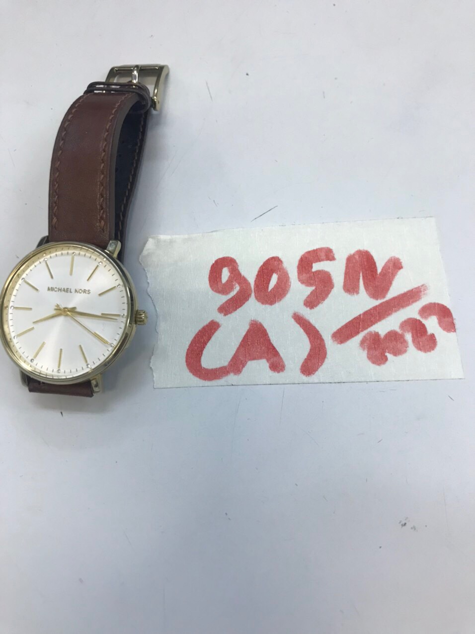 Ngày tiếp nhận: 06/10/2022 Mô tả: 01 đồng hồ dây da màu nâu mặt tròn chữ MICHEAL KORS. Vị trí: An ninh soi chiếu quốc nội |