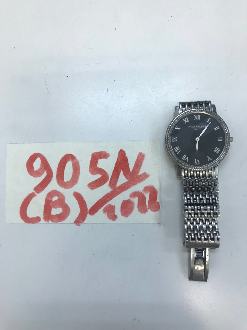 Ngày tiếp nhận: 06/10/2022 Mô tả: 01 đồng hồ dây KL màu bạc mặt tròn chữ PATEK PHILPPE. Vị trí: An ninh soi chiếu quốc nội |