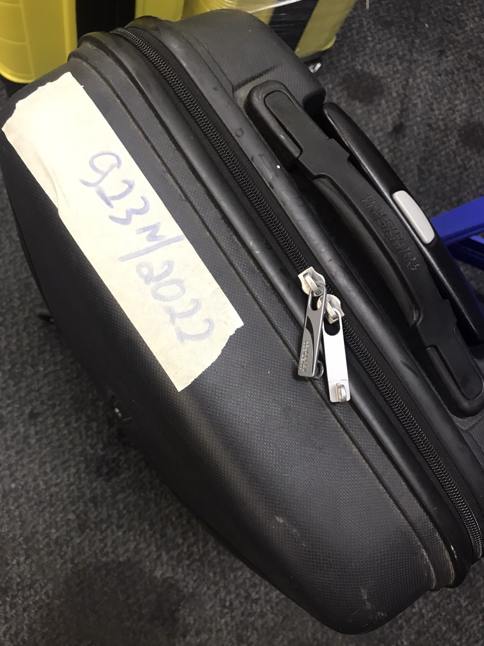Ngày tiếp nhận: 09/10/2022 Mô tả: 01 túi xách màu xám có quần áo. Vị trí: An ninh soi chiếu quốc nội |