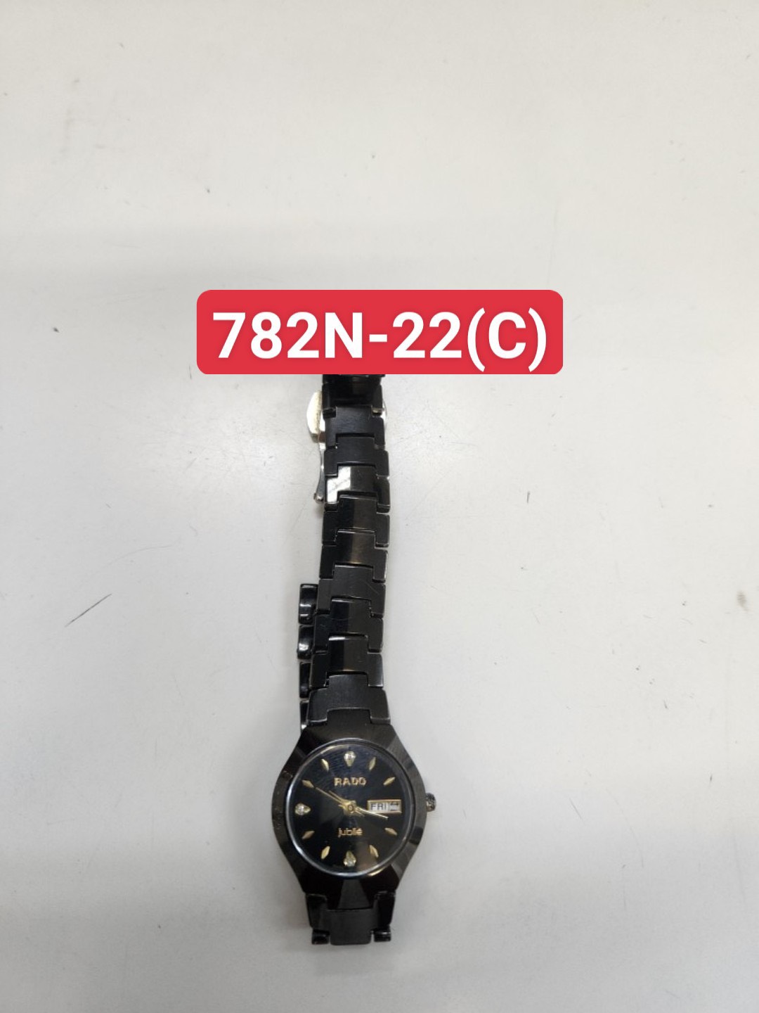 Ngày tiếp nhận: 09/9/2022 Mô tả: 01 đồng hồ dây kim loại màu đen mặt tròn chữ RADO. Vị trí: An ninh soi chiếu quốc nội |