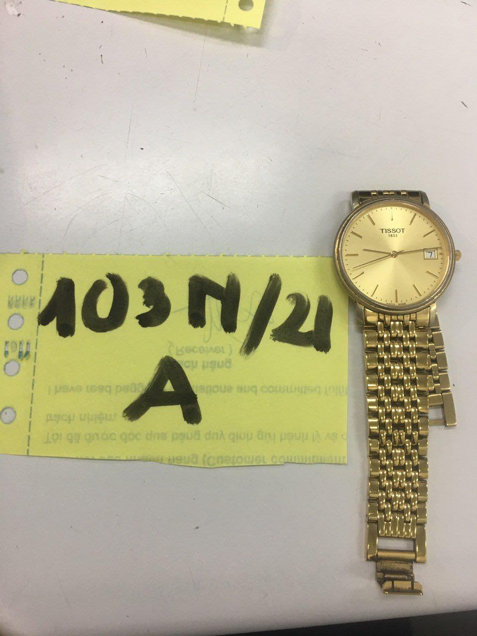 Mô tả: 01 Đồng hồ kim loại màu vàng "Tissot".