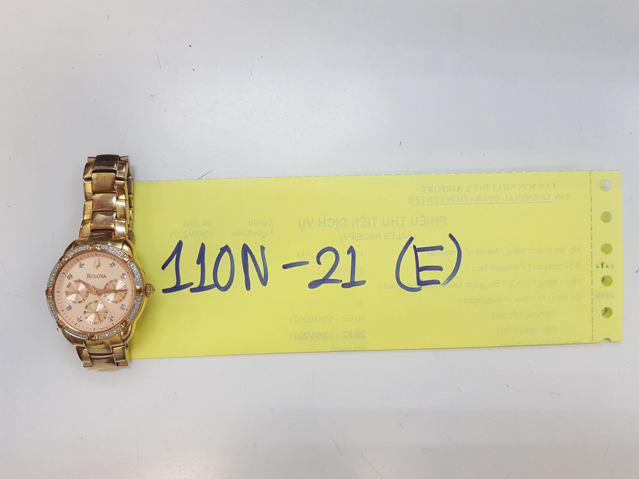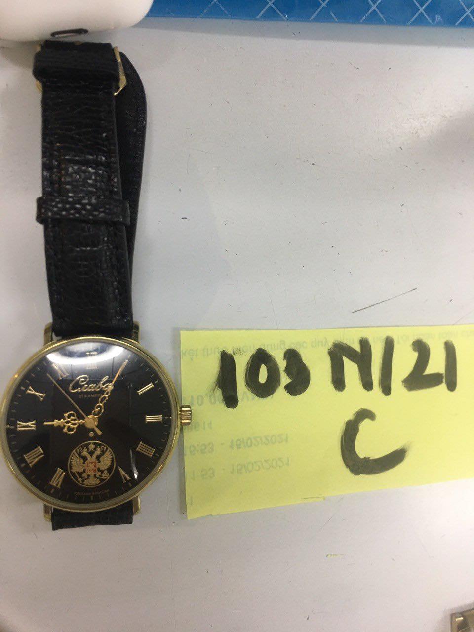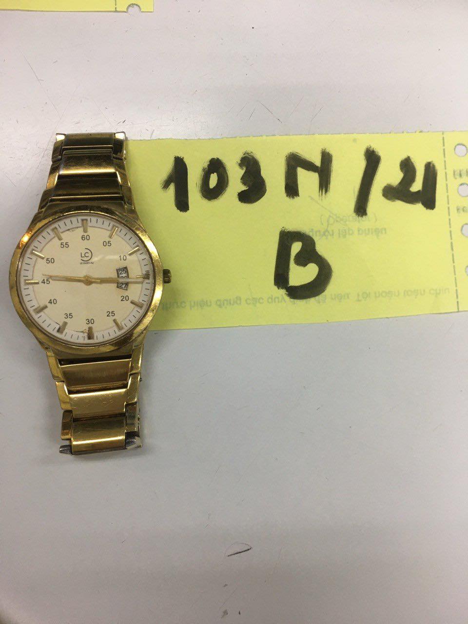 Mô tả: 01 Đồng hồ kim loại màu vàng không rõ nhãn hiệu.
