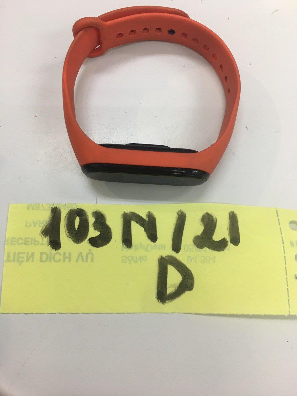 Mô tả: 01 Đồng hồ thông minh màu đen, dây cao su màu cam "MI".