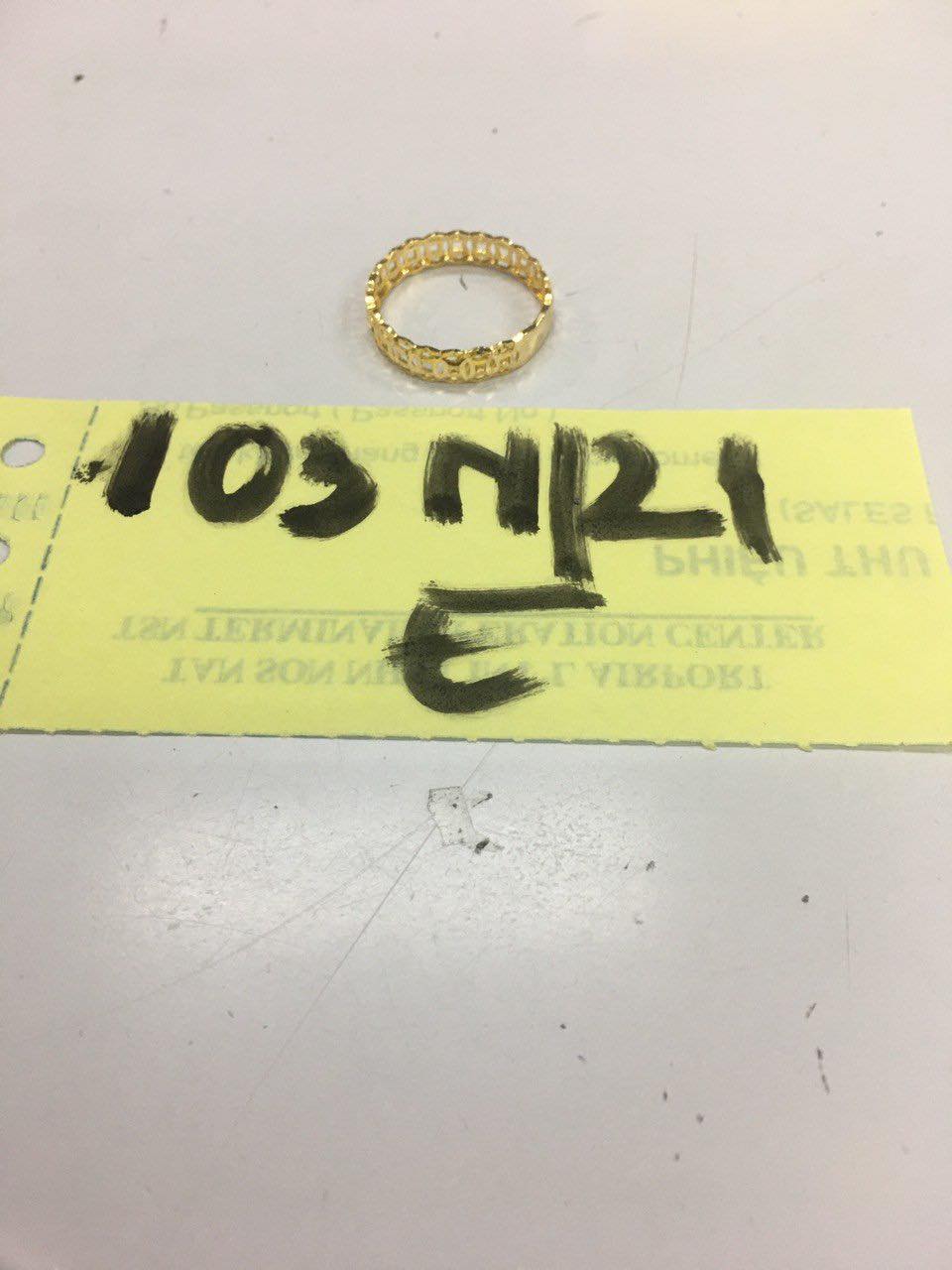 Mô tả: 01 Nhẫn kim loại màu vàng, có hoạ tiết đồng xu.