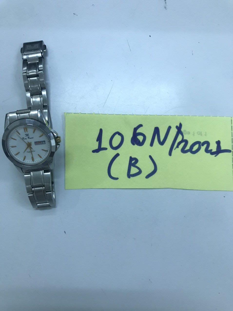 Mô tả: 01 Đồng hồ kim loại màu bạc, mặt trắng "Ray Rucci".