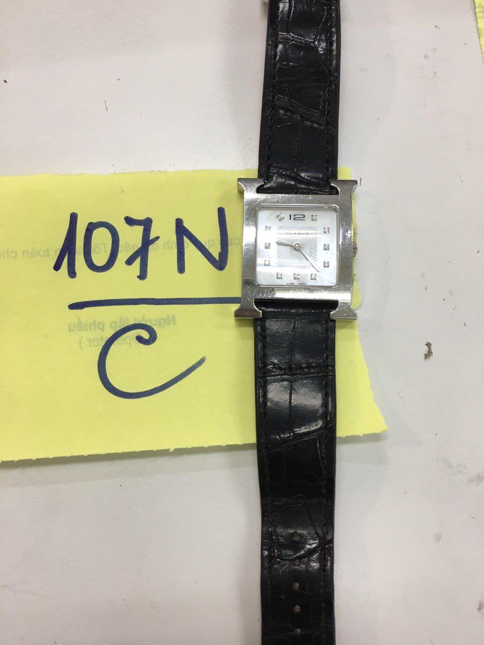 Mô tả: 01 Thắt lưng da màu đen mặt kim loại có chữ "H".