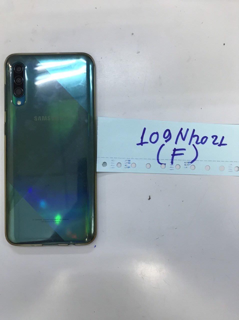 Điện thoại Samsung mặt sau màu xanh ngọc có ốp nhựa.