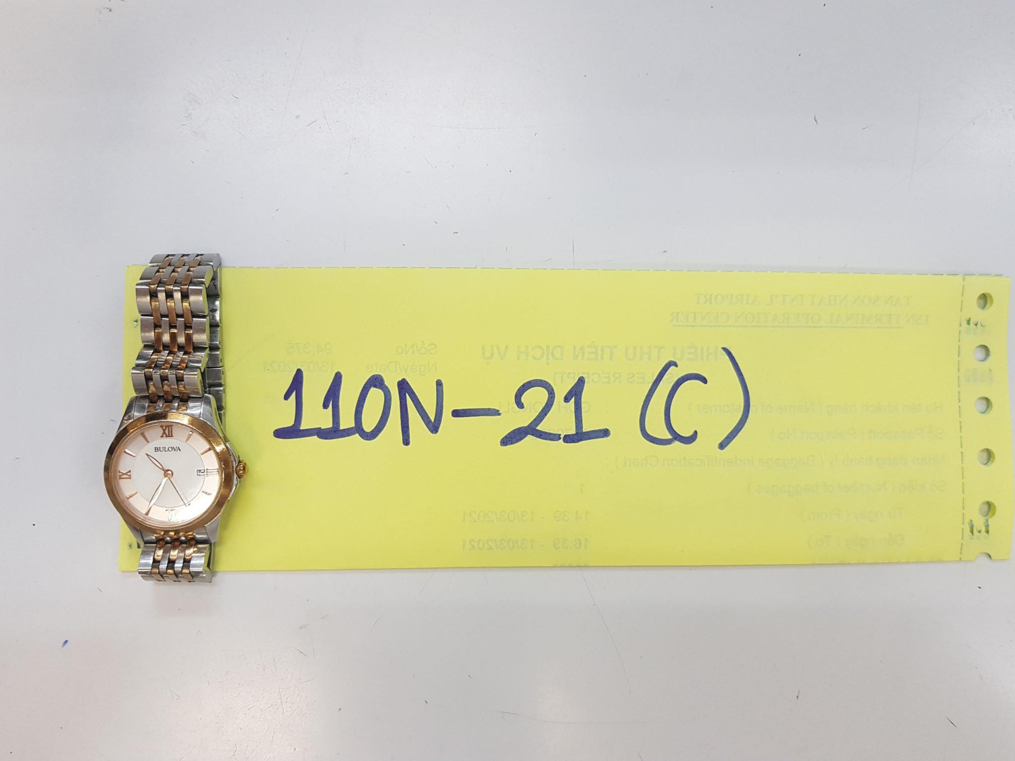 Đồng hồ dây kim loại màu trắng sọc "Bulova".