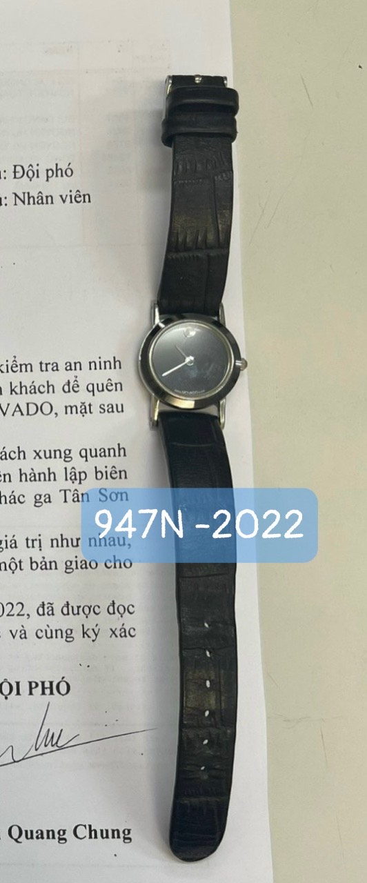Ngày tiếp nhận: 14/10/2022 Mô tả: 01 Đồng hồ "Movado" dây da màu đen. Vị trí: An ninh soi chiếu quốc tế |