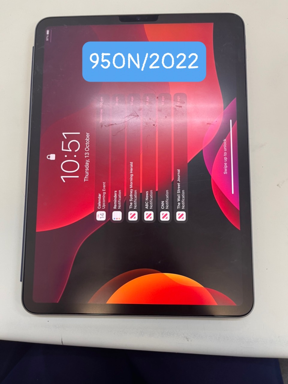 Ngày tiếp nhận: 14/10/2022 Mô tả: 01 Ipad xám trong bao bảo vệ màu đen. Vị trí: An ninh soi chiếu quốc tế |