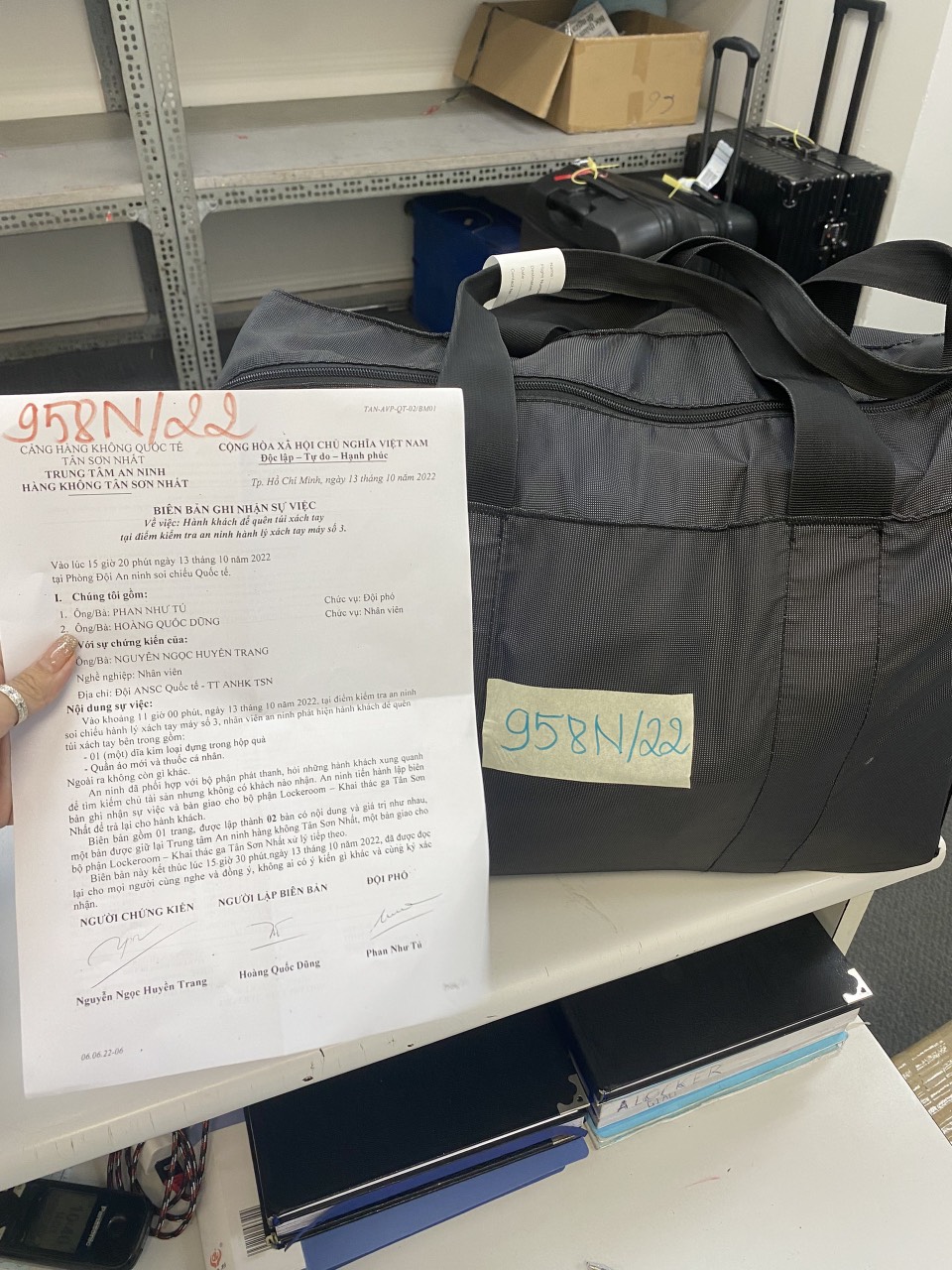 Ngày tiếp nhận: 14/10/2022 Mô tả: 01 túi xách tay bên trong gồm: 01 đĩa kim loại đựng trong hộp quà; Quần áo mới và thuốc cá nhân. Vị trí: An ninh soi chiếu quốc tế |
