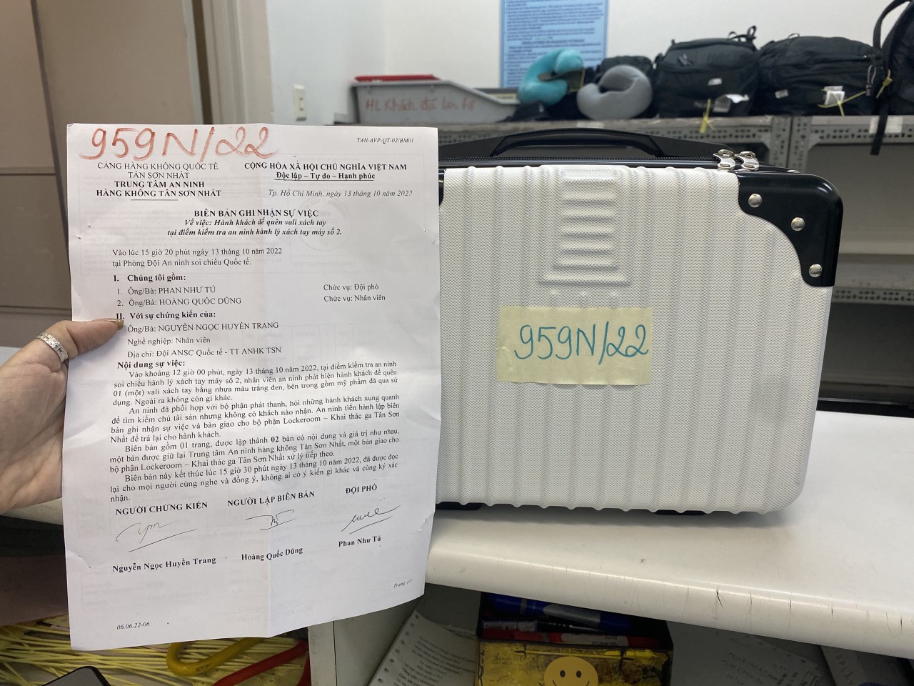 Ngày tiếp nhận: 14/10/2022 Mô tả: 01 vali xách tay bằng nhựa màu trắng đen bên trong có mỹ phẩm đã sử dụng. Vị trí: An ninh soi chiếu quốc tế |
