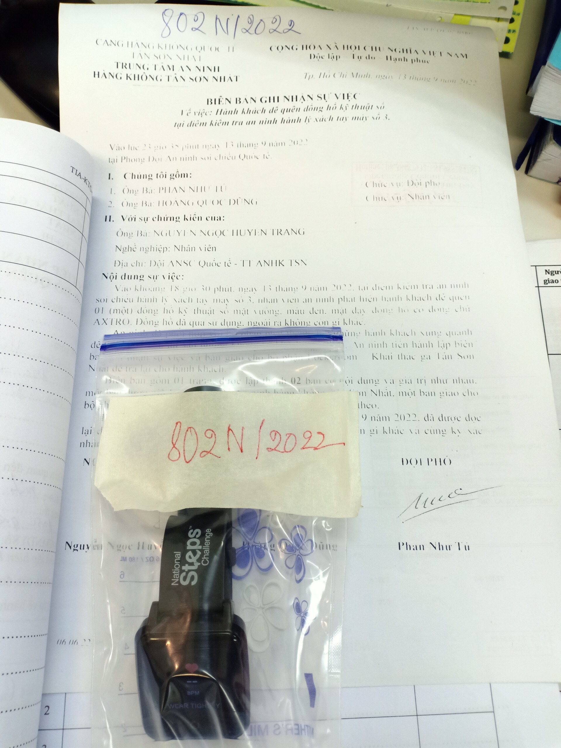 Ngày tiếp nhận: 13/9/2022 Mô tả: 01 đồng hồ đen Garmin. Vị trí: An ninh soi chiếu quốc tế |