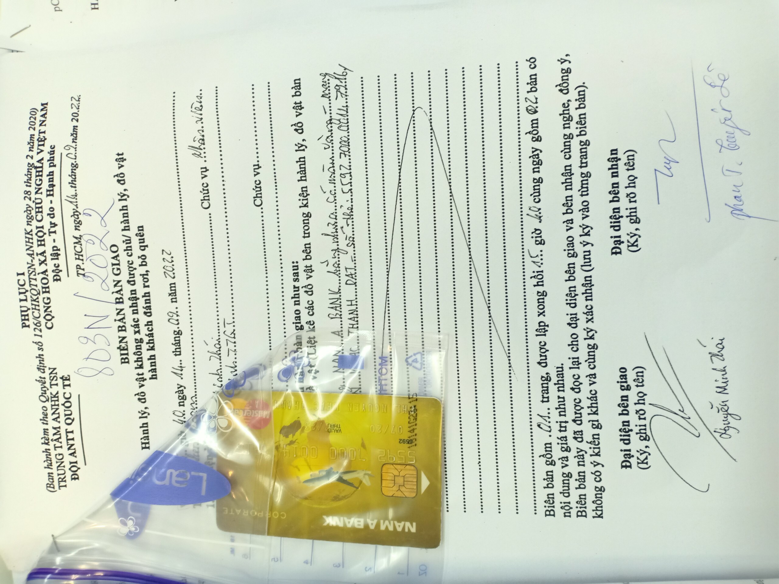 Ngày tiếp nhận: 12/9/2022 Mô tả: 01 ví đen có giấy tờ tên Nguyễn Thị Ngọc Hân và 3.208.000vnd. Vị trí: An ninh soi chiếu quốc nội |