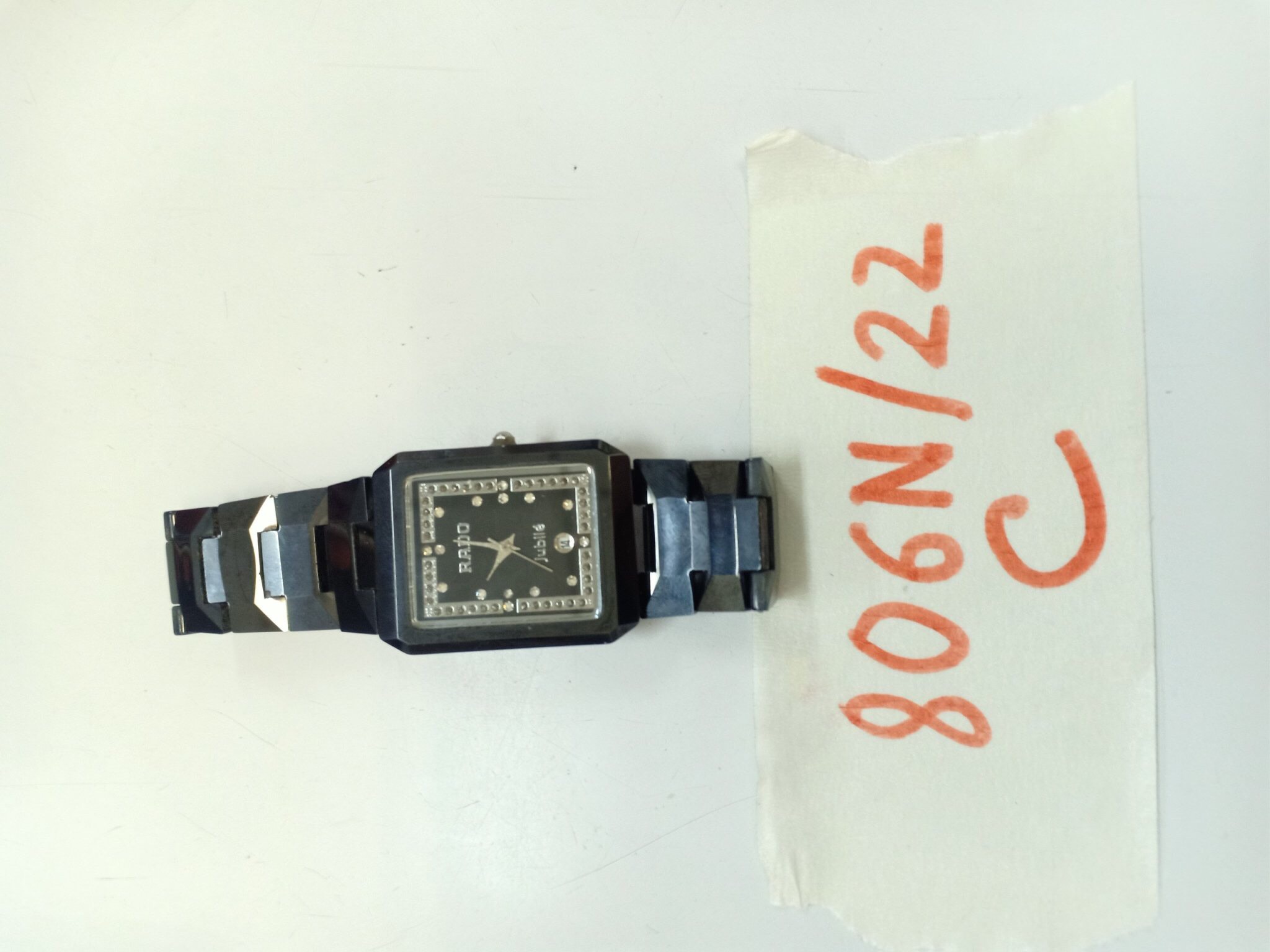 Ngày tiếp nhận: 14/9/2022 Mô tả: 01 đồng hồ dây đá đen Rado. Vị trí: An ninh soi chiếu quốc nội |