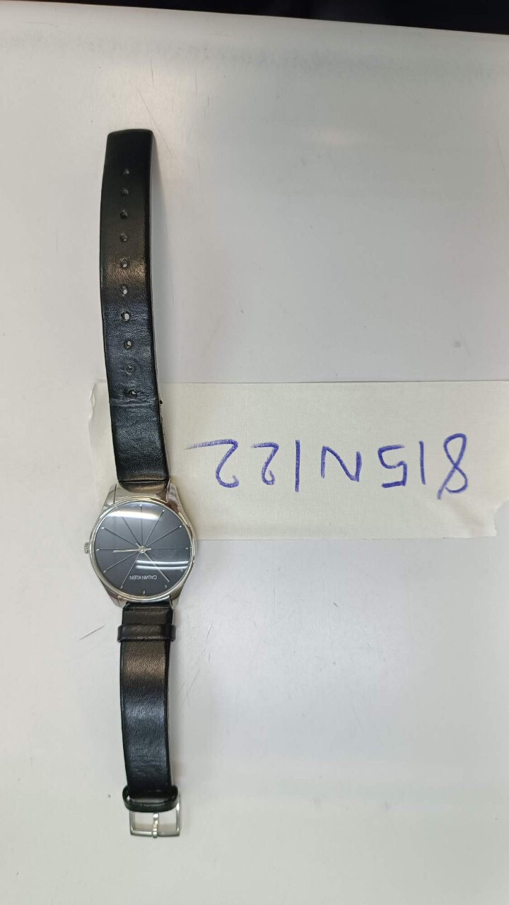 Ngày tiếp nhận: 18/9/2022 Mô tả: 01 đồng hồ dây da đen có chữ "CAVIN KLEIN". Vị trí: An ninh soi chiếu quốc tế |