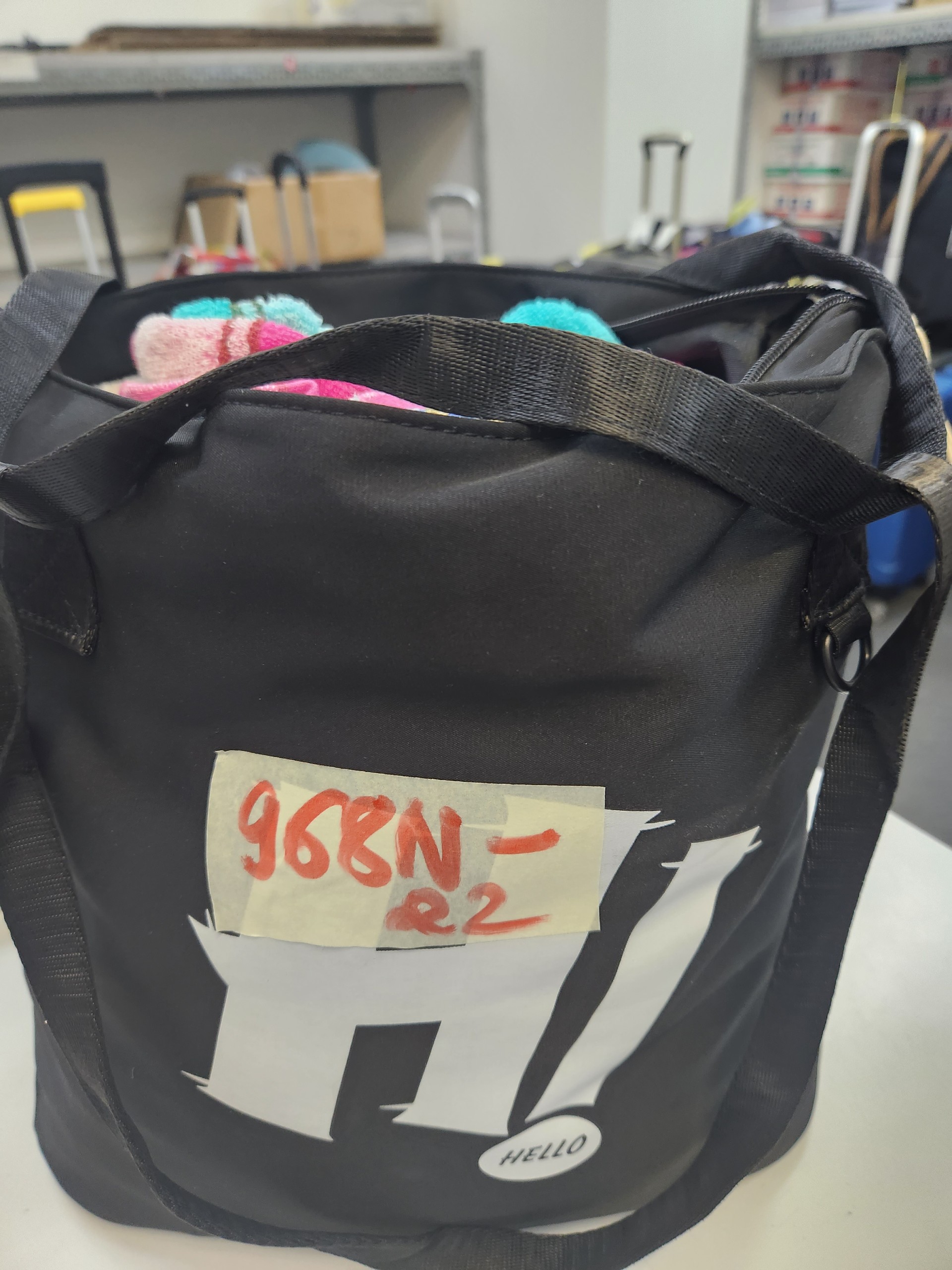 Ngày tiếp nhận: 17/10/2022 Mô tả: 01 túi xách bằng vải màu đen có chữ Hi Hello. Vị trí: An ninh soi chiếu quốc tế |