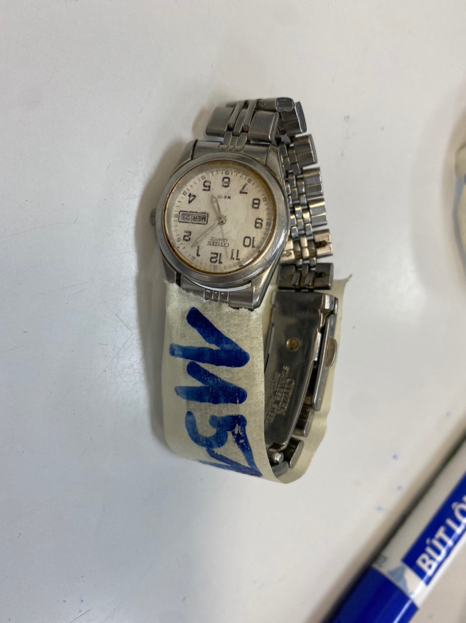 Ngày tiếp nhận: 27/11/2022 Mã hồ sơ: 1160N2022D Mô tả: 01 đồng hồ dây kim loại màu vàng chữ Fossil . Vị trí: An ninh soi chiếu quốc nội |